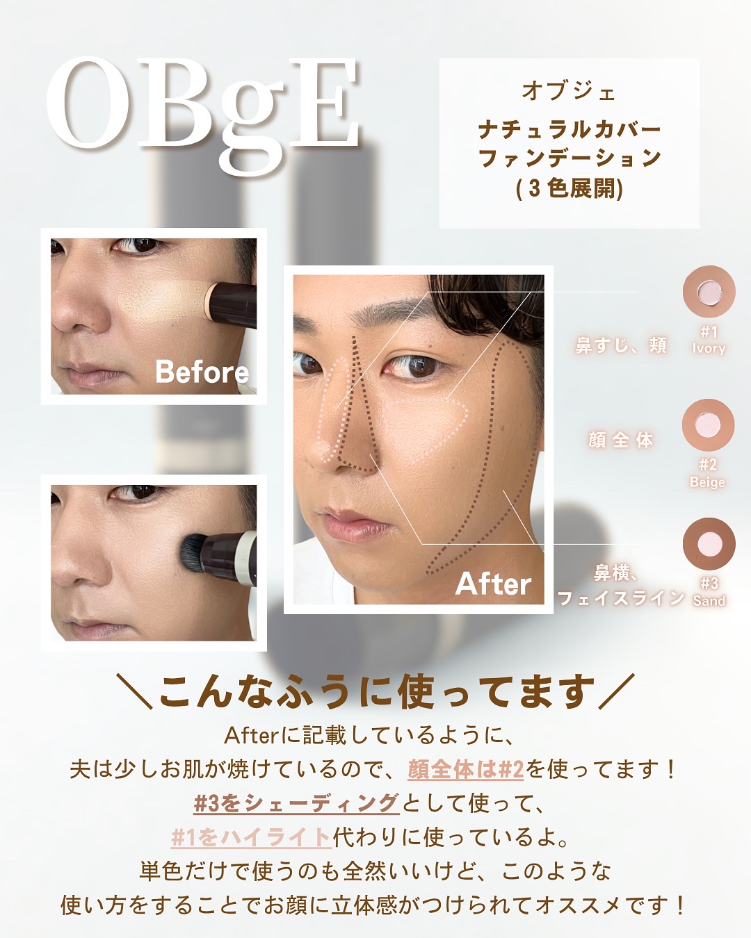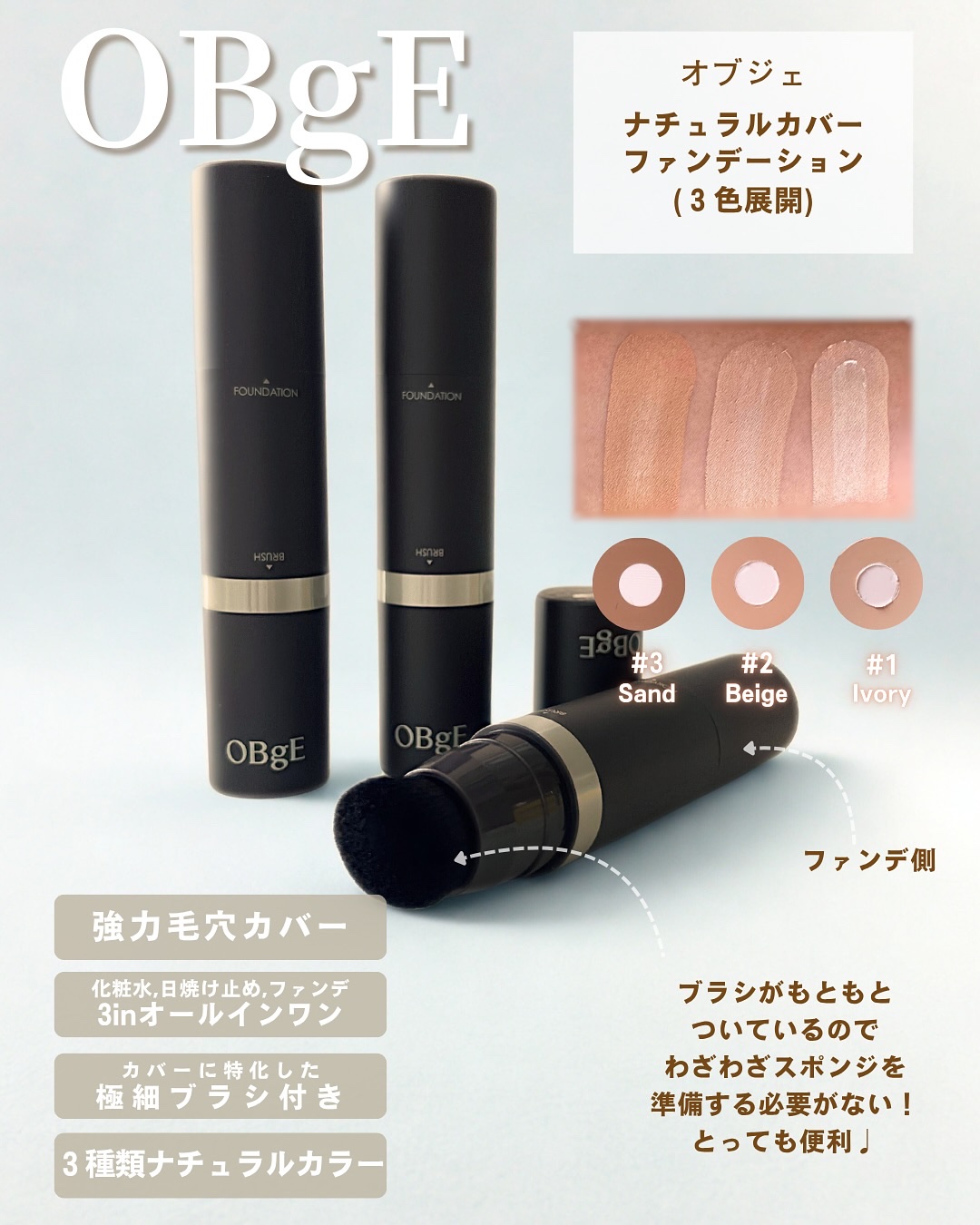 ギリギリ起床勢に最高の時短ベースメイク!OBgEナチュラルカバーファンデーション✼••••✼ファンデーション+日焼け止め+ローションがこれ1本に✨しっとりうるおいながら自然にカバーしてくれるから、厚塗り感ゼロで素肌っぽい仕上がりに!ブラシ付き...