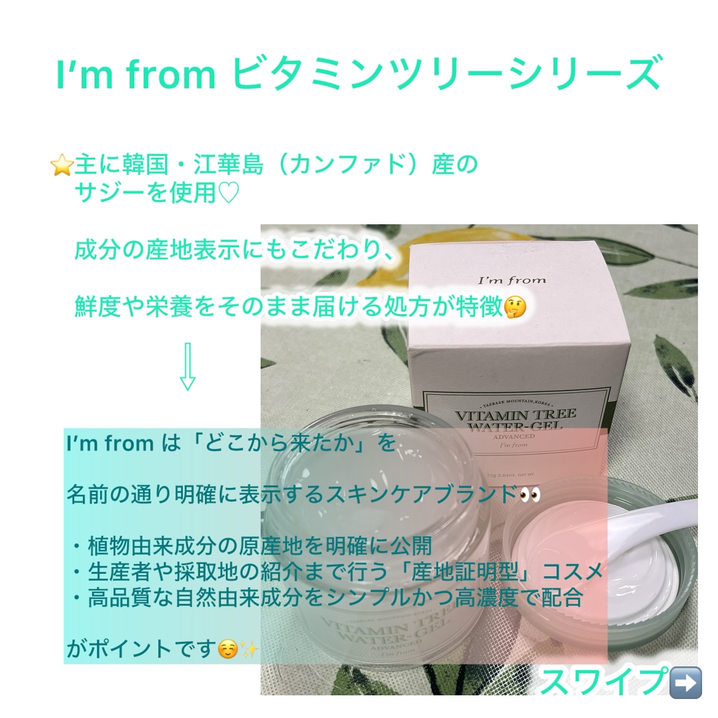 💚【I'mfrom】ビタミンウォータージェルアドバンスド💚栄養たっぷりビタミンツリー生葉水配合の超さわやか水分ジェル🩵🩵🩵🩵《POINT》🩵✔︎より早く、よりさわやかにパワーアップ✨✔︎天然ビタミン”ビタミンツリー”の生葉水真空方式でたっぷり...