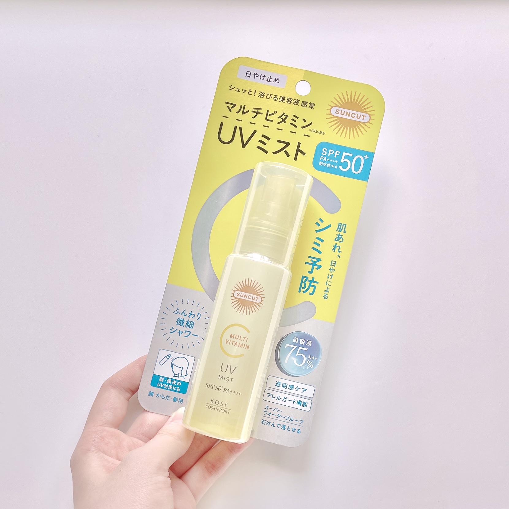 - 「浴びる美容液UV」水感のあるミストがピタッと密着 未来の美肌を変える シミ・肌あれ予防UVで肌あれ、日やけによるシミ・ソバカスを防ぎ透明感あふれる素肌をひきだします。美容液75%※配合 素肌と一体化したようなつけ心地!