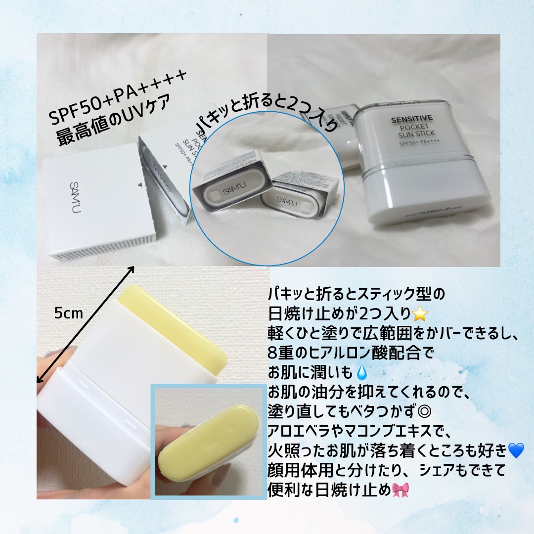 ✎ SAM'U⸜⸜センシティブポケットサンスティック⸝⸝ パキッと割っていく〜〜(雑ASMR) 1箱に2個入っているよ〜🤍べたつきなくフェイスやボディへいつでもどこでも簡単ひと塗り!🙌 #PR#samu#サミュ#sam_u#商品提供#サミ...