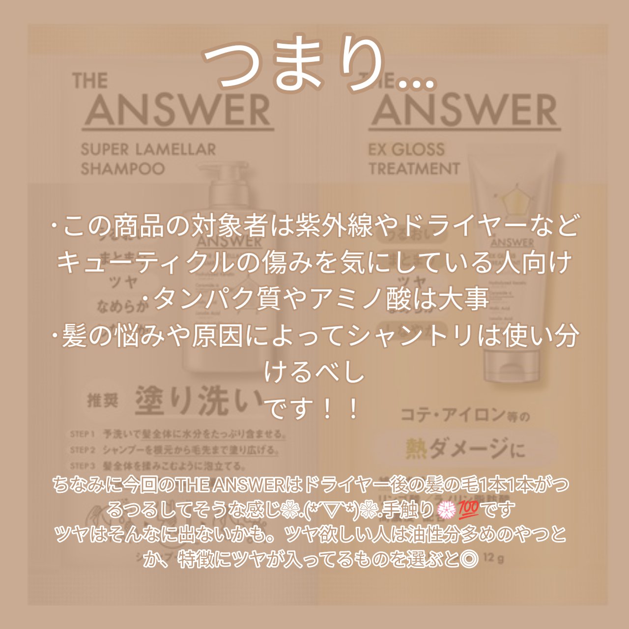 THEANSWERTHEANSWERスーパーラメラシャンプーポンプ400mlTHEANSWEREXモイストトリートメントFORDAILYDAMAGE2025上半期ベスコス総合第1位(@cosme)花王のヘアケア注目しとこ。引用しましたが、me...