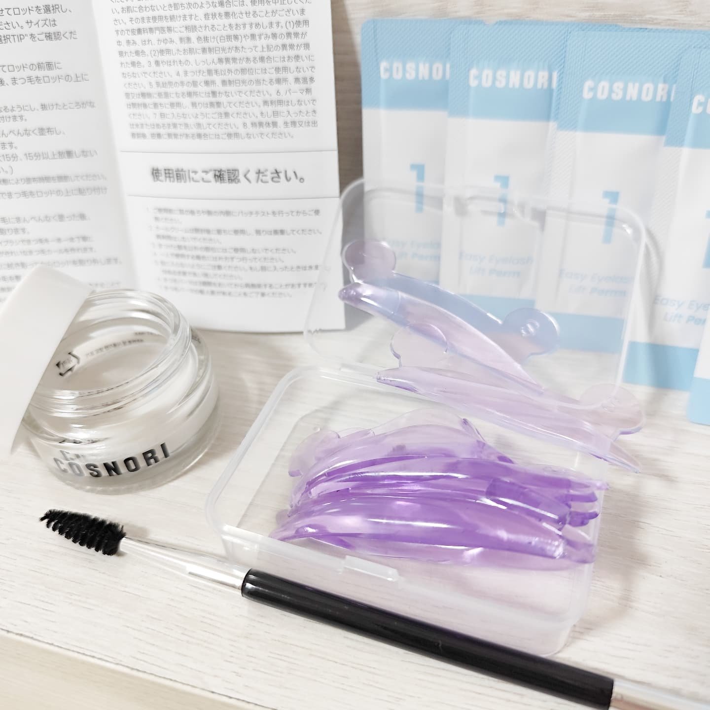 #PR🌟COSNORIイージーアイラッシュパーマキット(@cosnori_jp)シリコンロッドがグルーなしで瞼に貼りつくから楽ちん!目頭/目尻まで、目のカーブに合わせてぴったり密着🙌筆とスクリューブラシが一体になったデュアルブラシがまつげのキ...