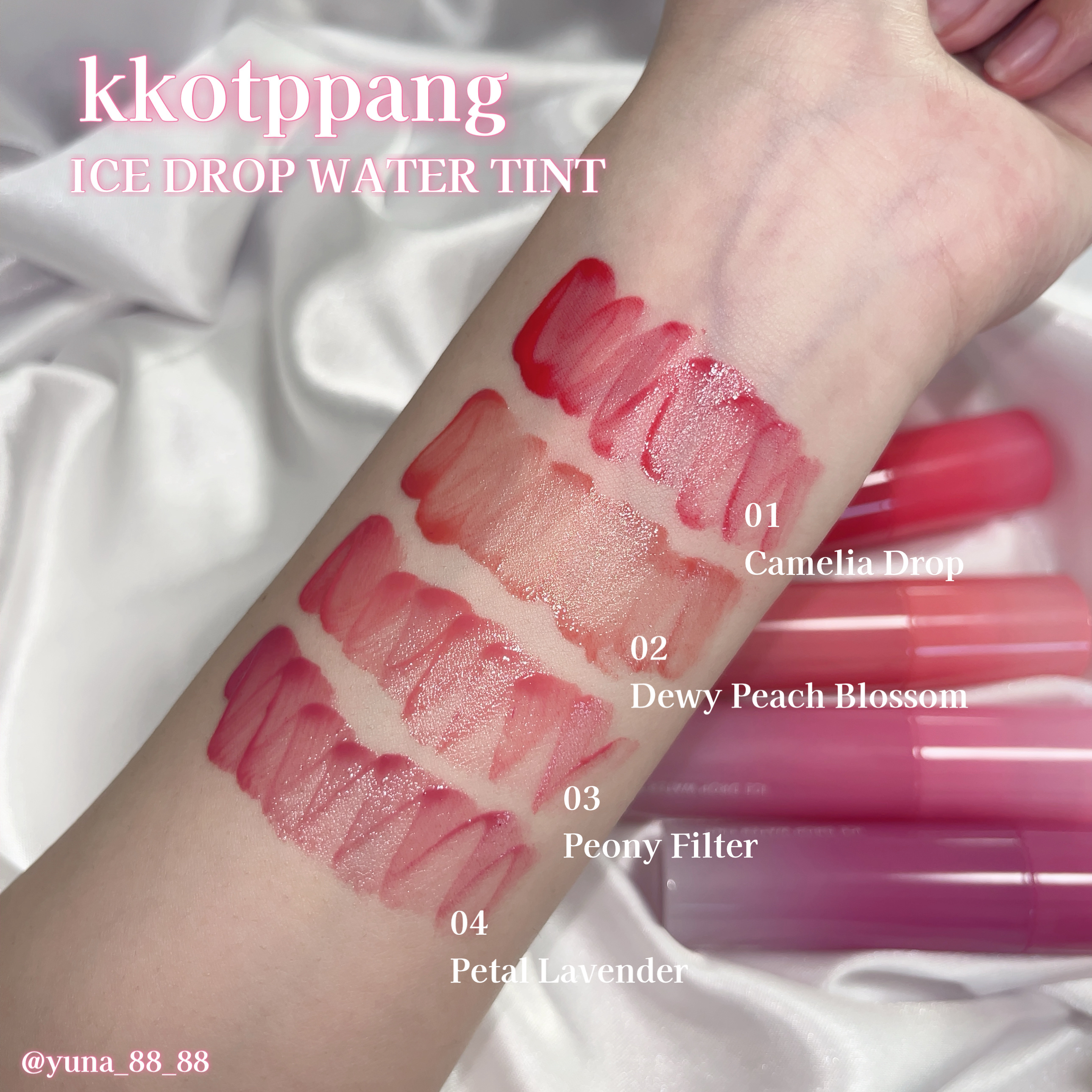 💐🫖𓍯kkotppang⌇アイスドロップウォーターティント⸻水のように軽く&簡単に塗れるじゅわっと沁み込みティント❤︎冷たく淹れた花茶からインスピレーションを受けた上品なカラー展開が特徴的💐⌇01カメリアドロップ/冷茶椿PC関係なく使用できる...