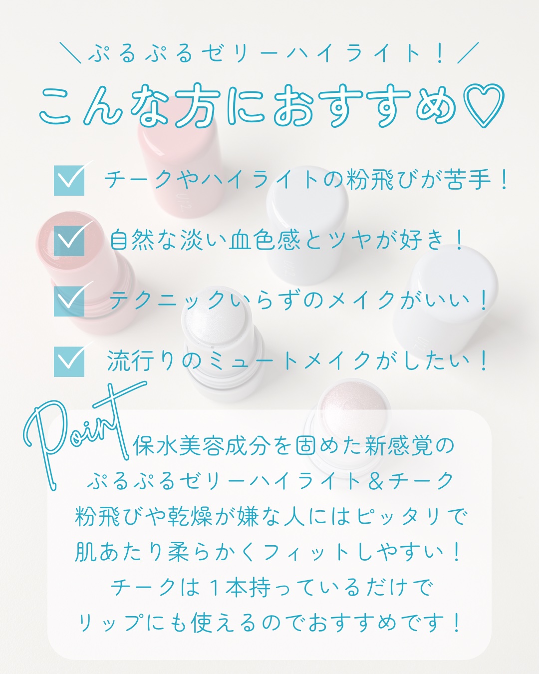 \じゅわっと色付く/【Ui2.】・ハイドロゼリーハイライト・ハイドロゼリーチークウイウイの失敗知らずぷるピタレイヤーゼリー!今回使ったのは、01高揚ピーチ(チーク)、03星雲ラベンダー(ハイライト)、04雨音ペールブルー(ハイライト)✨ぷるん...