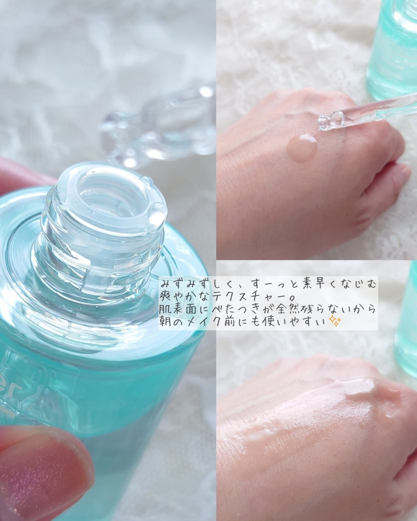 | みずみずしいジェルクリームの心地よさ🫧 さらっとしたつけ心地で、朝のスキンケアにも使いやすいテクスチャー🌊 | 詳細を見る |