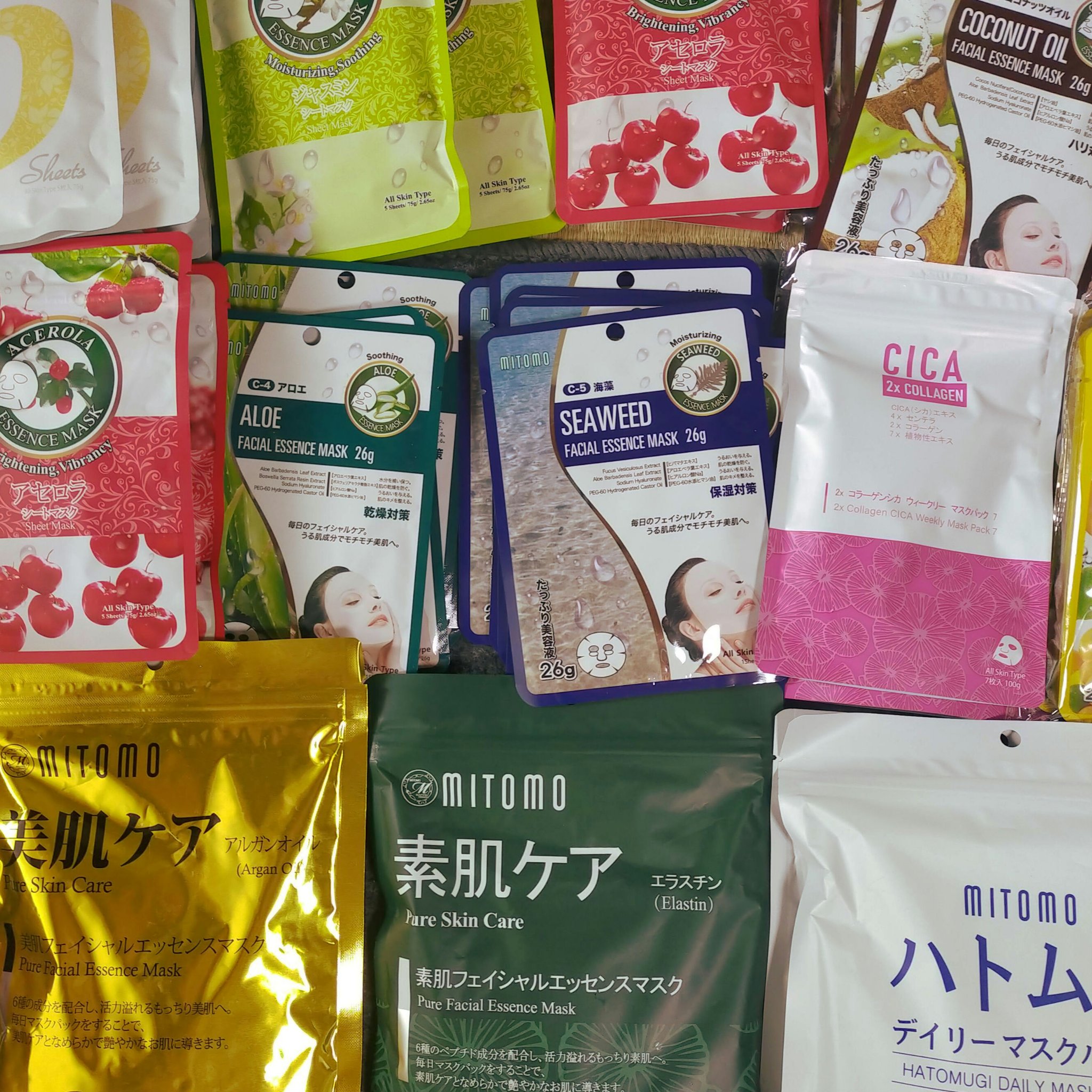 MITOMO集中保湿福袋300枚MITOMOさんの美友美肌フェイシャルエツセンスマスクインナードライのような気がし集中保湿福袋300枚を購入しました。黄色💛のmaskは美肌[アルガンoil]配合。1つの袋に7回分入り♡他(PINKはプラセンタ...
