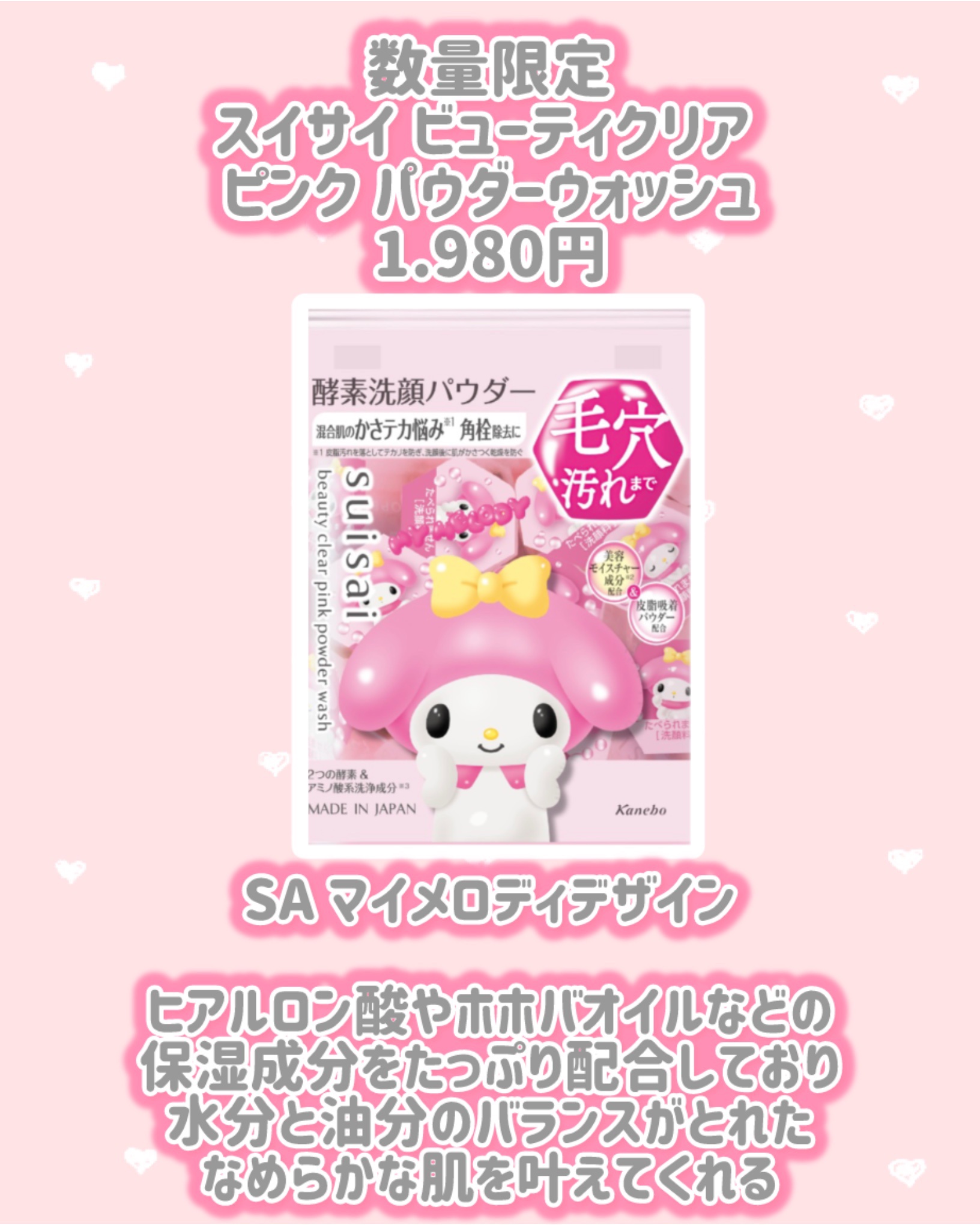 6/13先行販売・6/21販売開始!サンリオコラボ商品✼••┈┈••✼••┈┈••✼••┈┈••✼••┈┈••✼スイサイ ビューティクリアスイサイビューティクリアパウダーウォッシュNSAハローキティデザインスイサイビューティクリアブラックパウ...