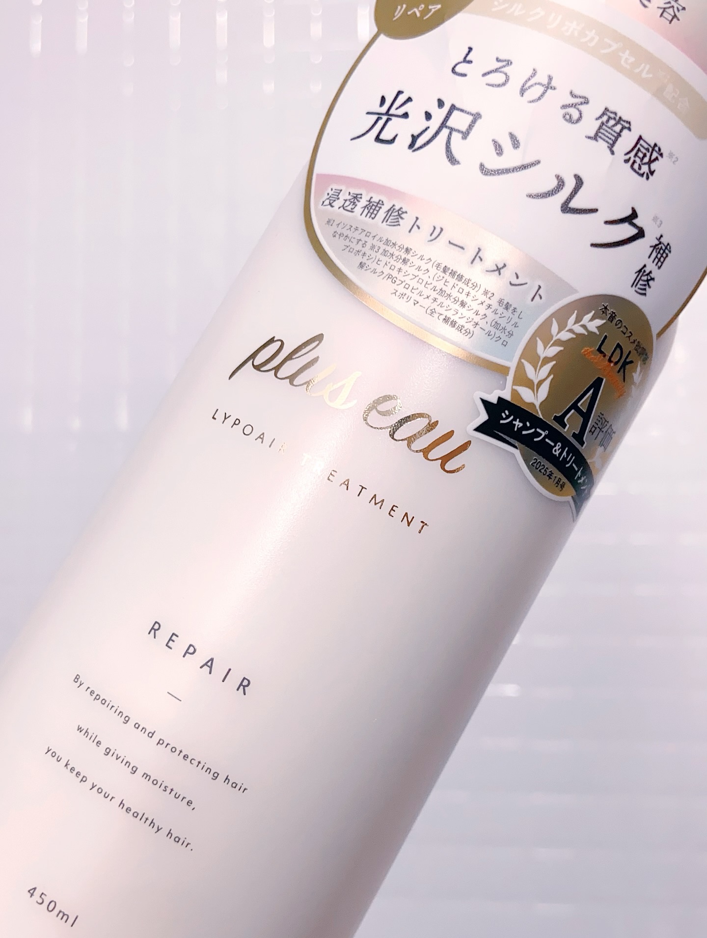 - とろけるような質感と、ダメージでパサつきがちな髪も毛先までツヤめくしっとり髪へ導く美容液シャンプー&光沢補修トリートメント。 より浸透性が高くなるカプセル化技術を採用したシルクリポカプセルを補修成分として配合。 髪の芯まで徹底補修しながらキューティクルをなめらかに整え、しっとりと潤いツヤめく髪へと導きます。 また洗いながらも髪ダメージを補修するPPT系洗浄成分を、シリーズ比で高濃度に配合。 シルク由来PPT系洗浄成分と、肌のことを考えたアミノ酸系の4種の洗浄成分とバランスよくブレンドすることでキメ細かな濃密補修泡が摩擦レスでリッチな洗い心地を実現し、髪と頭皮をいたわりながらシャンプーでも毛髪ダメージに徹底アプローチします。 カシミヤ由来のケラチンをはじめとする2種のケラチン、コラーゲン、CMC類似成分などのこだわり配合した補修成分だけでなく、美容保湿成分をたっぷり浸透させて密封補修することで、カラーや熱ダメージによるパサつき・広がり・ゴワつきなどの蓄積ダメージもしっかりケア。 ドライヤーやヘアアイロンの熱ダメージから髪を守りツヤを与える、ヒートリペア成分を配合して熱も味方に。 清楚な上品さを纏うホワイトフローラル&ペア―の香り。 2024年10月中旬 一部企業にて先行発売