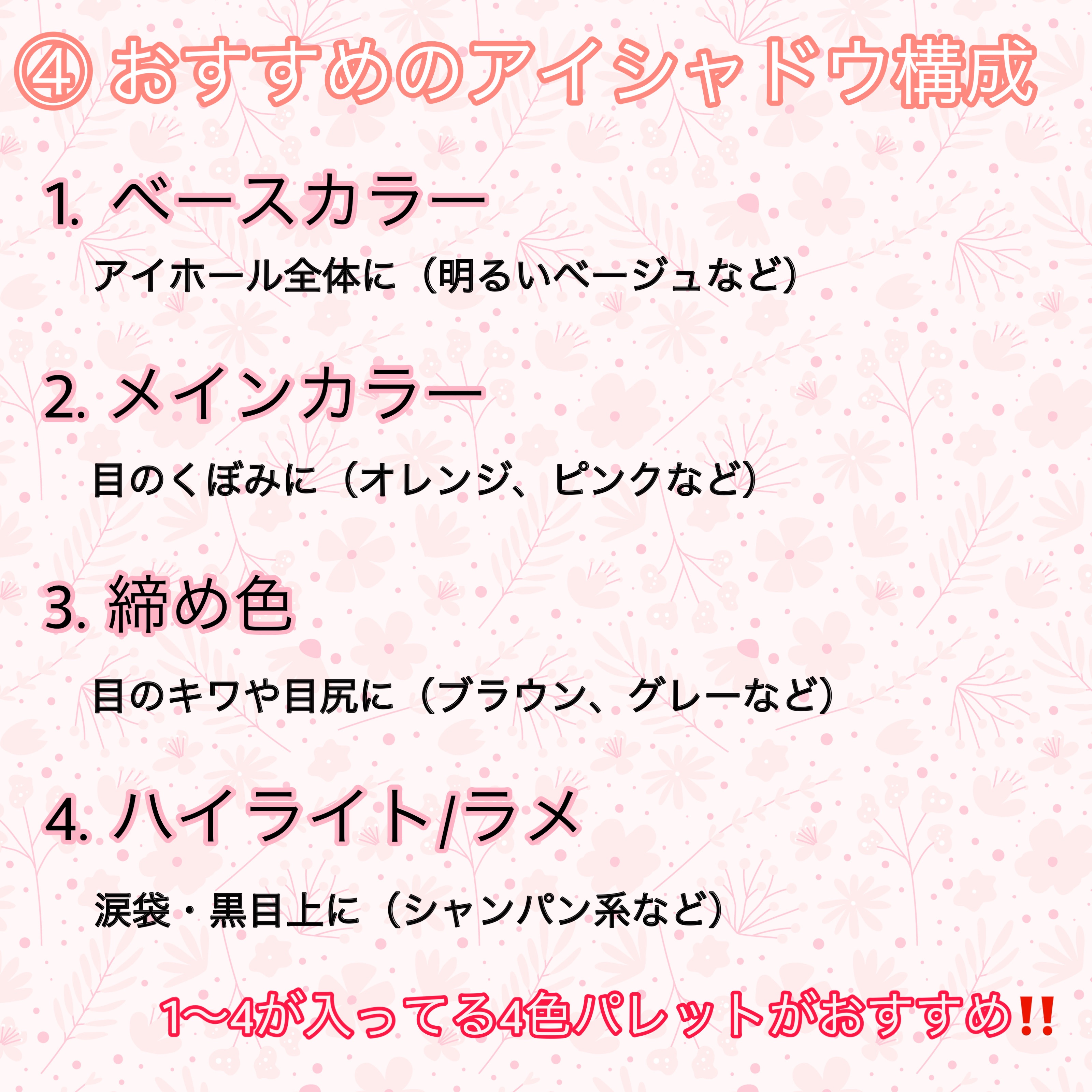 | 3つの異なる質感からなる4色パレットで、使い方によって雰囲気も質感も変わっていきます✨ | 詳細を見る |