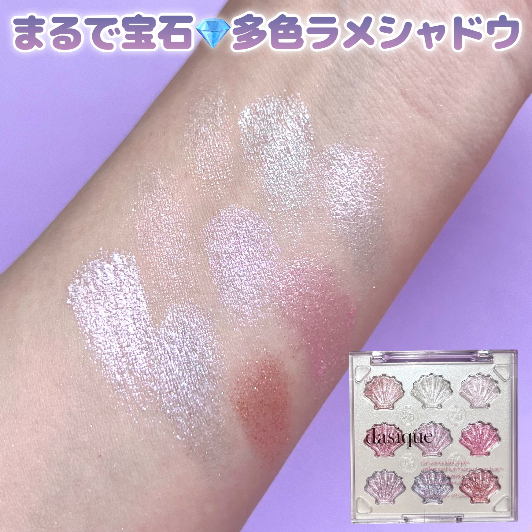 @dasique_jpさんの新作、トゥインクルマーメイドのアイシャドウとハイライターをご紹介✨名前の通りマーメイドをイメージしたパケで貝殻が夏っぽくてめちゃ可愛い🐚全部ラメのアイシャドウパレットは、カラーが違うから今日はどれ使おうかワクワクし...