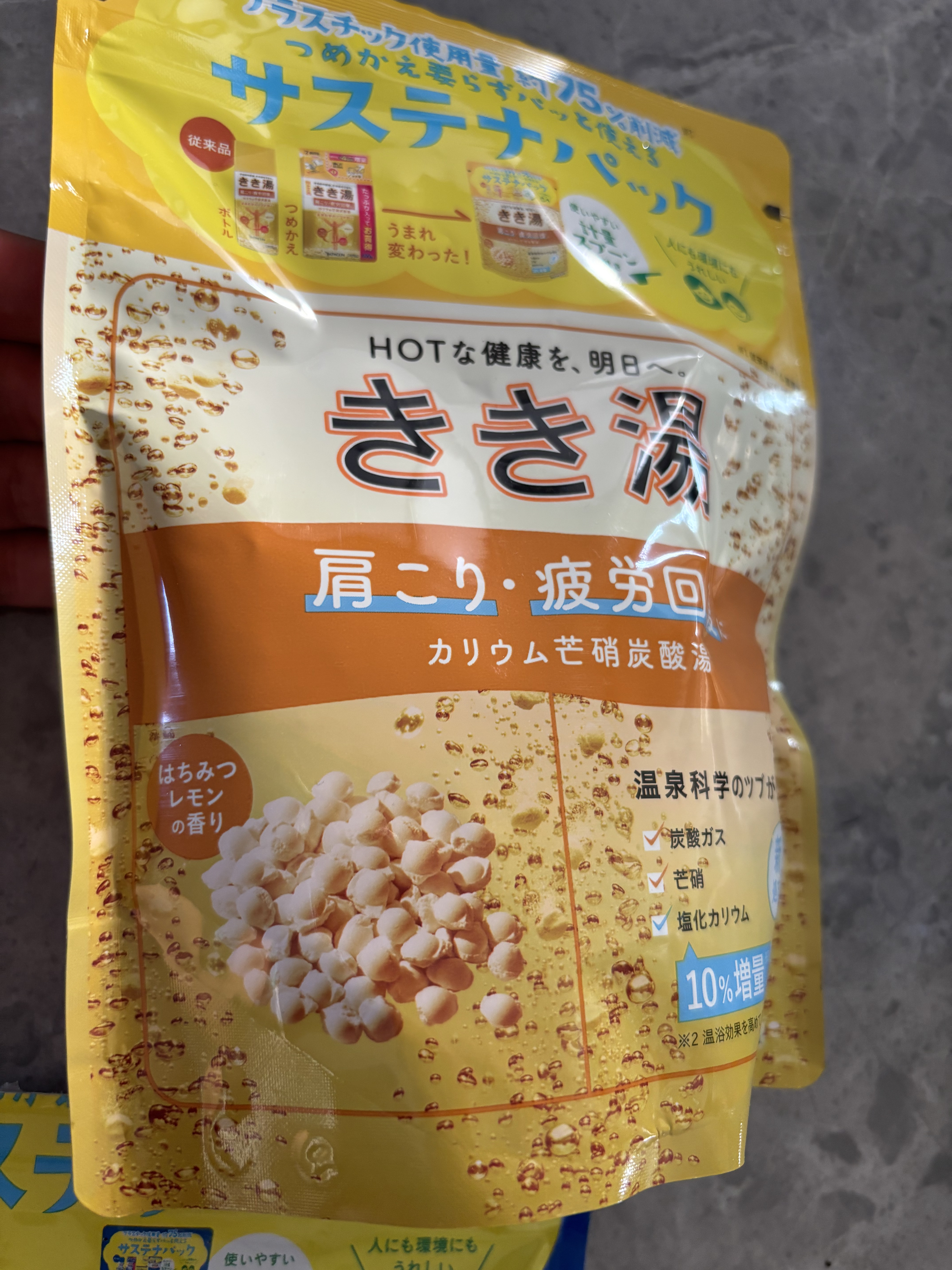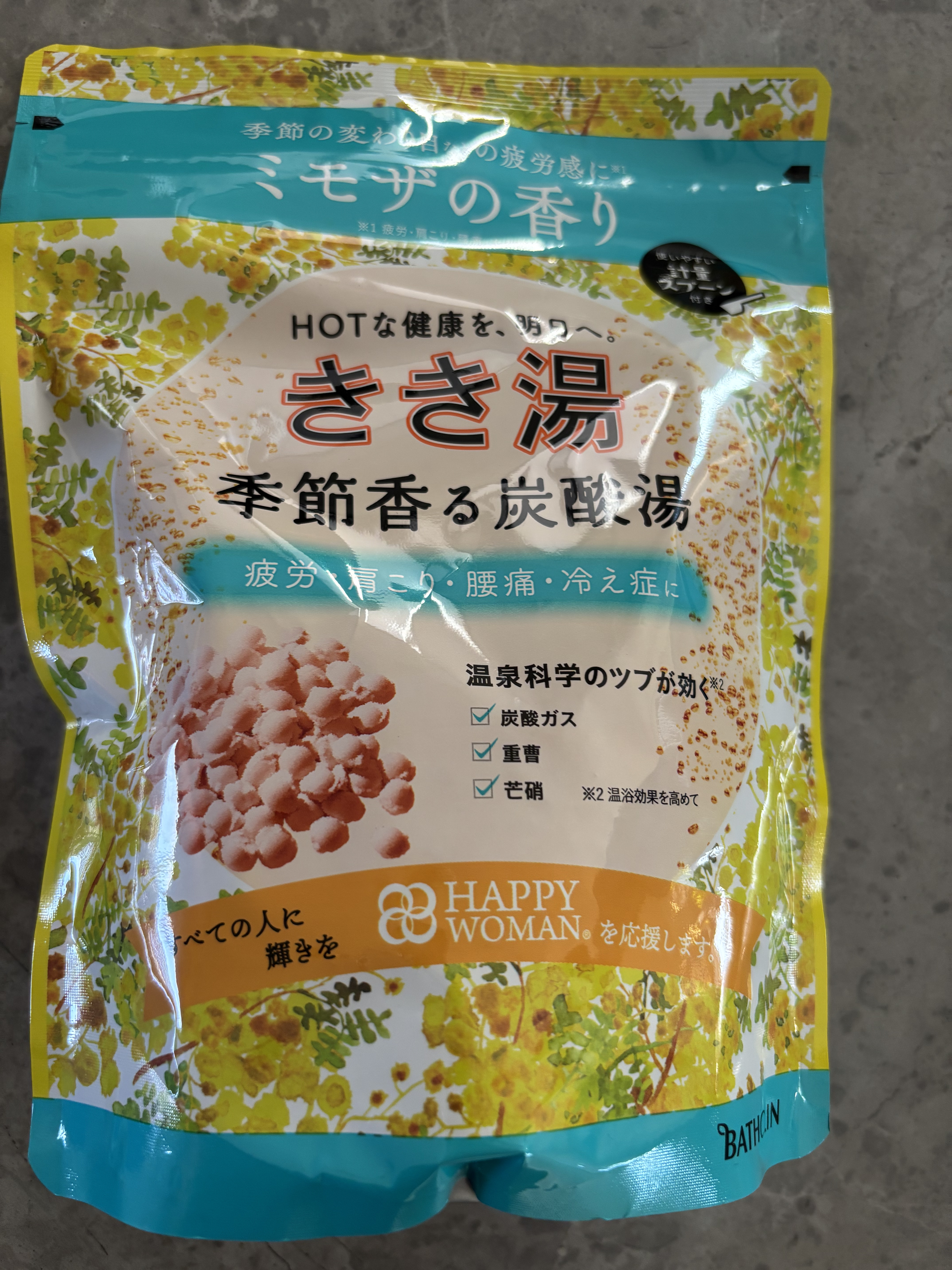 こちらは2月、数量限定発売です✨ 季節の変わり目などの疲労感(疲労・肩こり・腰痛・冷え症)に。 入浴剤はほんのりピンクのつぶつぶで、お湯に入れるとしゅわしゅわ〜っと溶けていきます😌 ふんわり軽やかなミモザの香りで気分がやわらぎ、癒されながら入浴できました✨