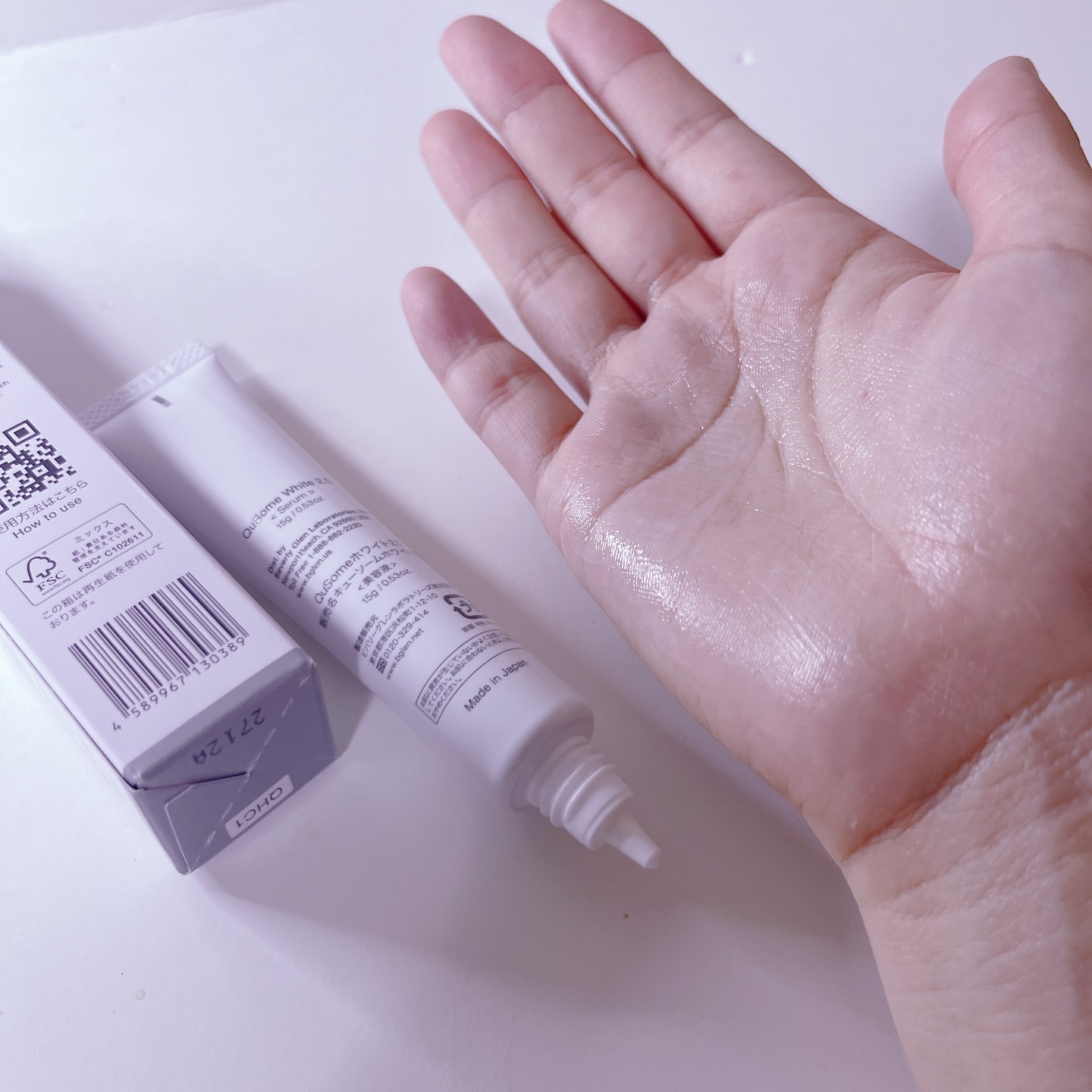 手に取ってみると、なめらかな感触で伸びがいいです。乗せた時密着感があります。 テクスチャは軽く肌馴染みが良く、軽くトーンアップしてくれます。 薄いオレンジ色ぽい感じで、薄い色のシミを少し隠してくれる感じです。 他のファンデーションと重ねてもモロモロがでるとかムラになるとかもなかったので使いやすいです。 手に取ると淡いベージュ色だけど、肌に乗せてみると白っぽくなり、肌色補整とトーンアップ効果があります。 日焼け止め効果もしっかりあるのでひとつあると便利かも。