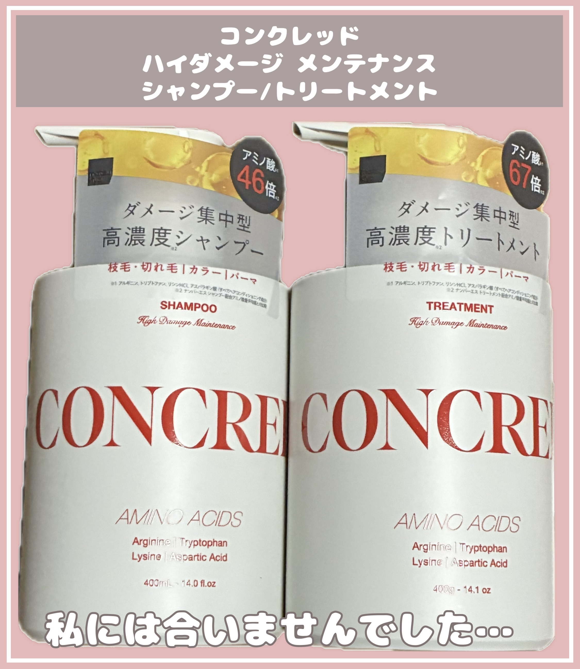 【マツキヨコンクレッドハイダメージメンテナンスシャンプー&トリートメントレビュー】LIPSを通じて「matsukiyoCONCRED様」から商品提供をいただきました🕊matsukiyoCONCREDには、❤ひどく傷んだ髪を艶めく上質ななめらか...