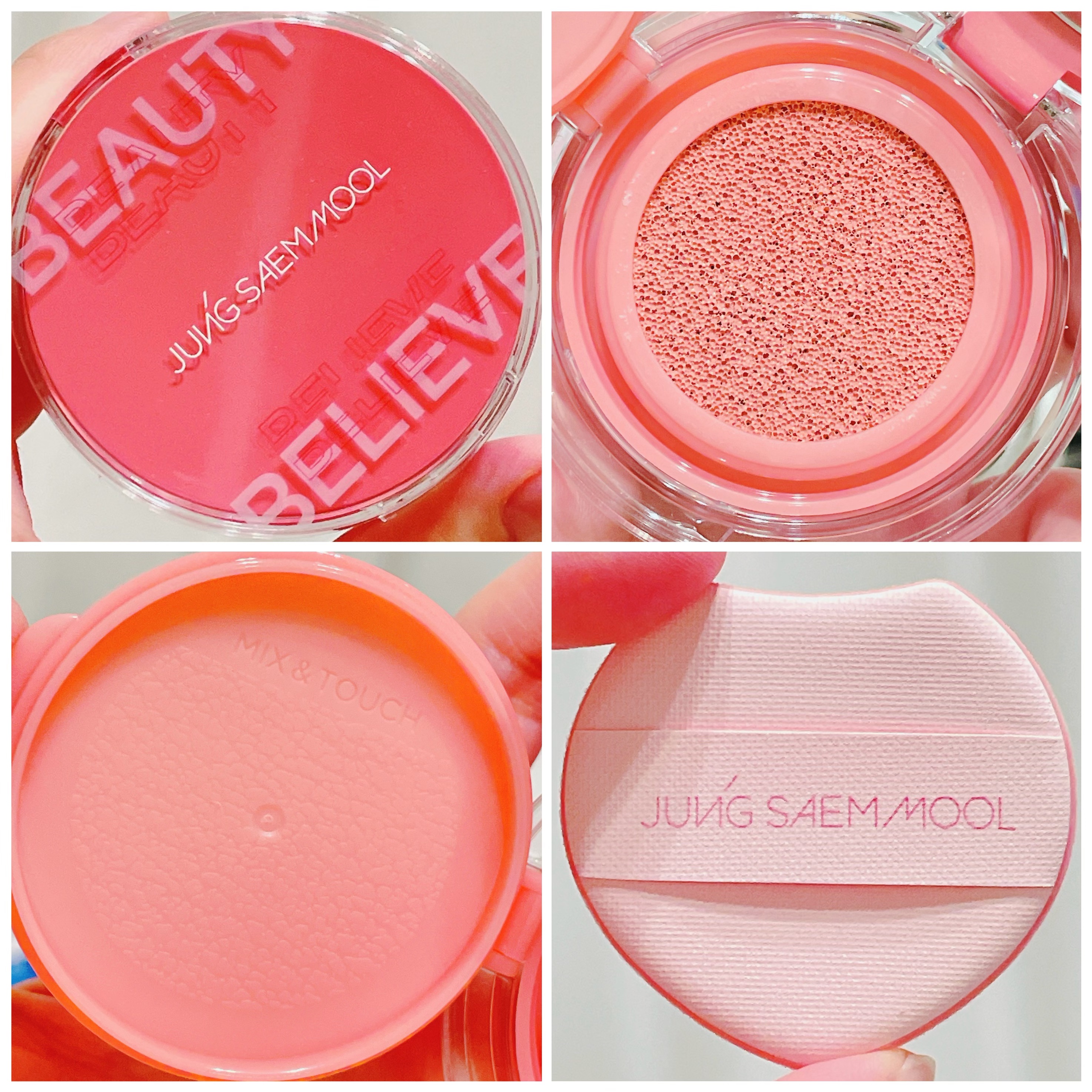 JUNGSAEMMOOLアーティストクッションブラッシュCoralHaloパッケージがとっても可愛い♡水分エッセンス77%配合で、みずみずしくじんわり染まる、“水彩チーク”持ち運びに便利な大きさで、クッションタイプのチークです。パフは目の下な...