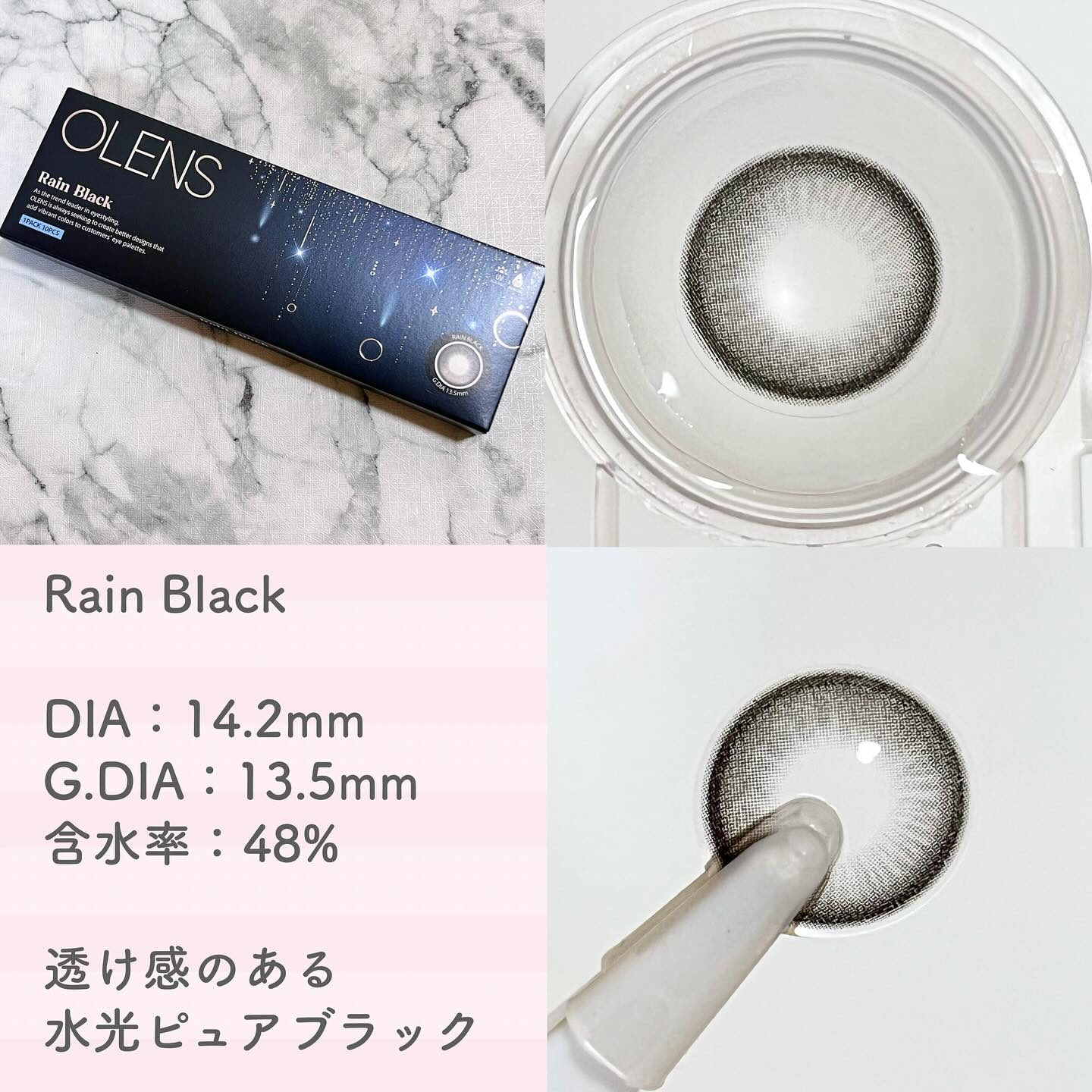 𓊆ㅤOLENS黒目カラコン𓊇透明感抜群で、ラメメイクにも低彩度メイクにも合います🫧どちらも洗練された綺麗で美しく惹き込まれる瞳になれます🪄OLENS ▶▶▶▷ RainBlack1DAY ¥1,7601Day(1箱10枚入り)DIA14.2m...