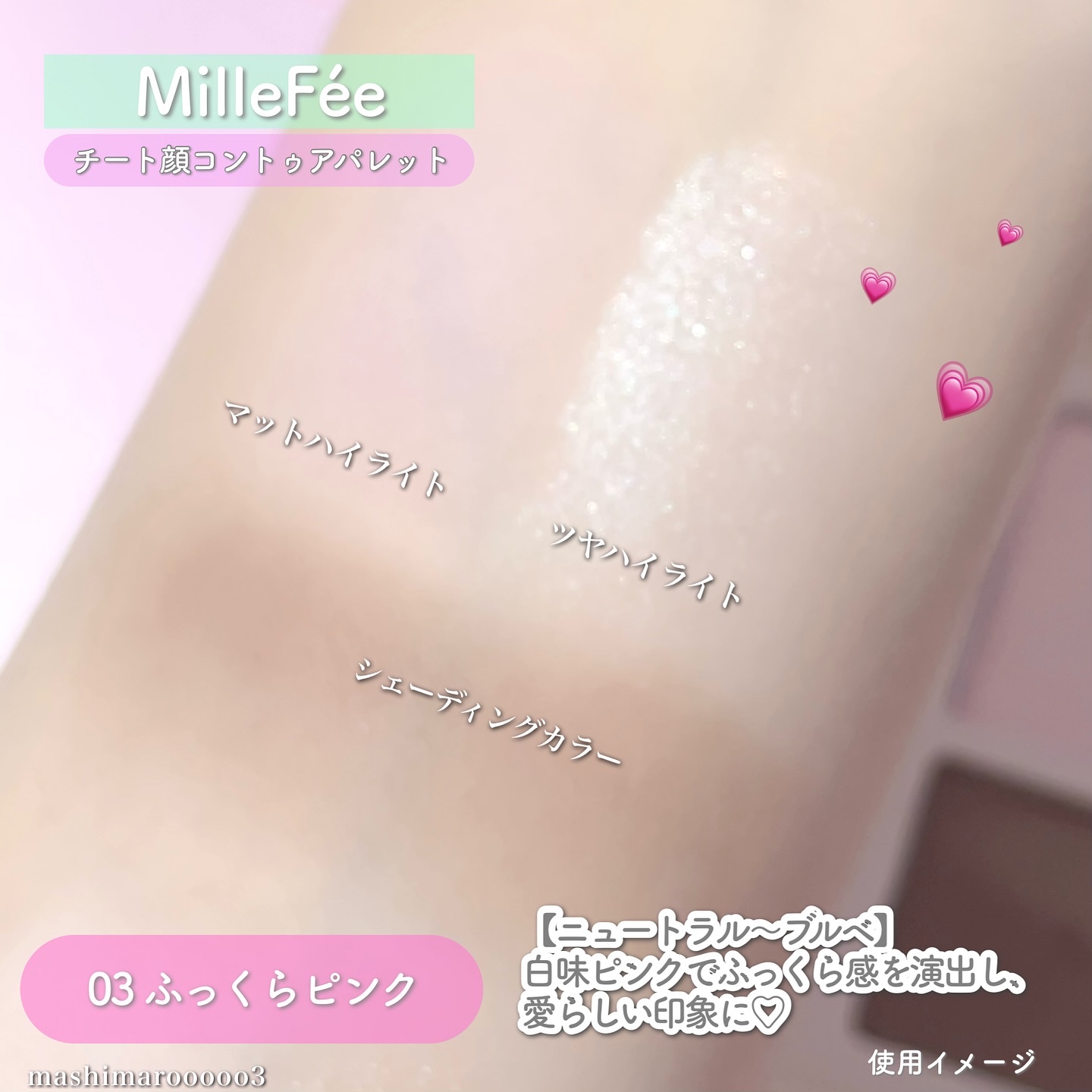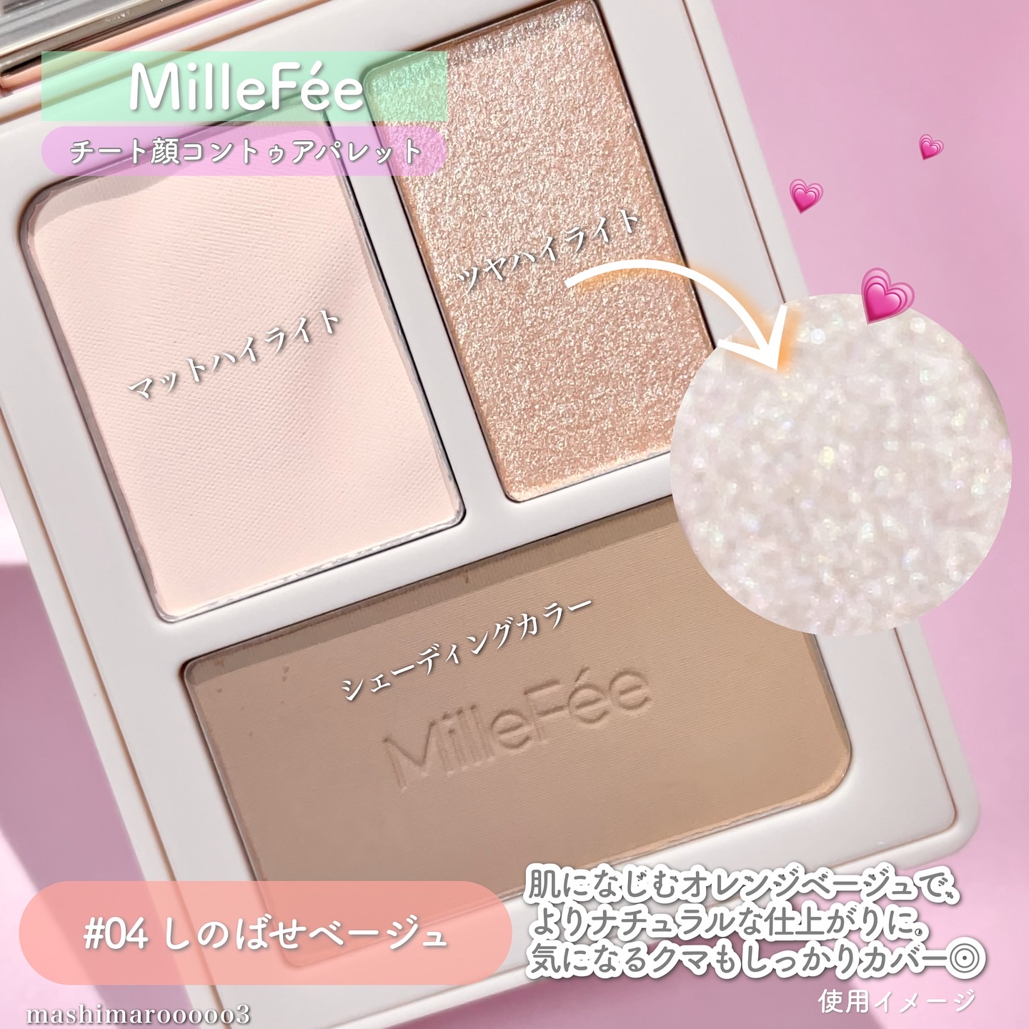 MilleFéeの大人気チート顔コントゥアパレットに新色2色が仲間入り!MilleFéeチート顔コントゥアパレット03ふっくらピンク04しのばせベージュ2種類のハイライトとグラデーションシェーディングで自然な立体感と中顔面短縮を叶えます。マッ...