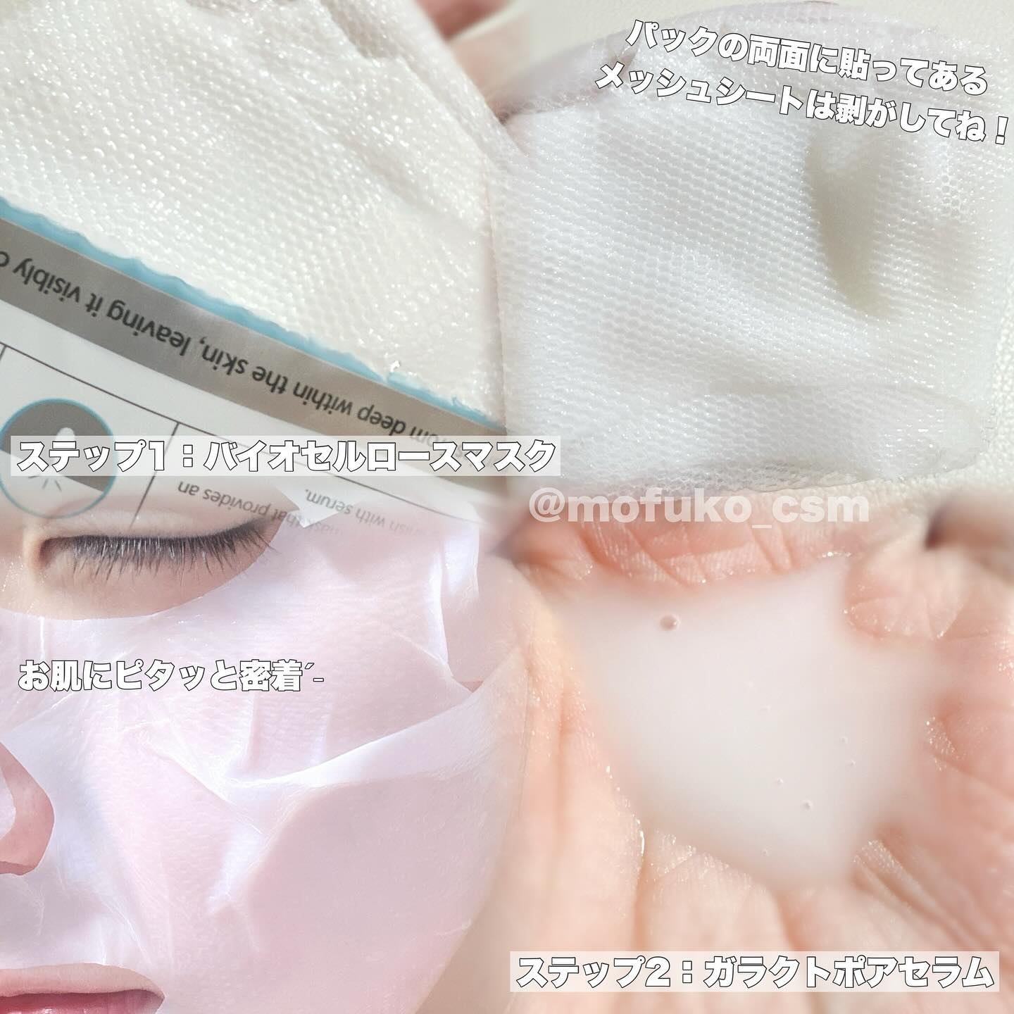 - うるおい成分たっぷりのバイオセルロースマスクが肌に密着し、肌をなめらかに整えます。 さらにセラムがうるおいをプラスし、なめらかでもちもちとした肌印象へ導く2ステップスペシャルケアセット ガラクトシリーズより登場したスペシャルケアマスク! こだわりの2ステップケアで毛穴ケア+保湿効果のダブルケア。 果物や植物発酵エキスで作られた密着性の高い自然由来のやわらかバイオセルロースシートが肌にピタッと密着し毛穴に詰まった汚れを柔らかくしシートマスクへ吸着させることで角質除去と肌のキメを整えます。 さらにスペシャル毛穴ケアの仕上げとして毛穴ケアガラクトポアセラムで保湿、ハリケアや肌のキメを整え、毛穴を目立ちにくく肌をなめらかに整えます。