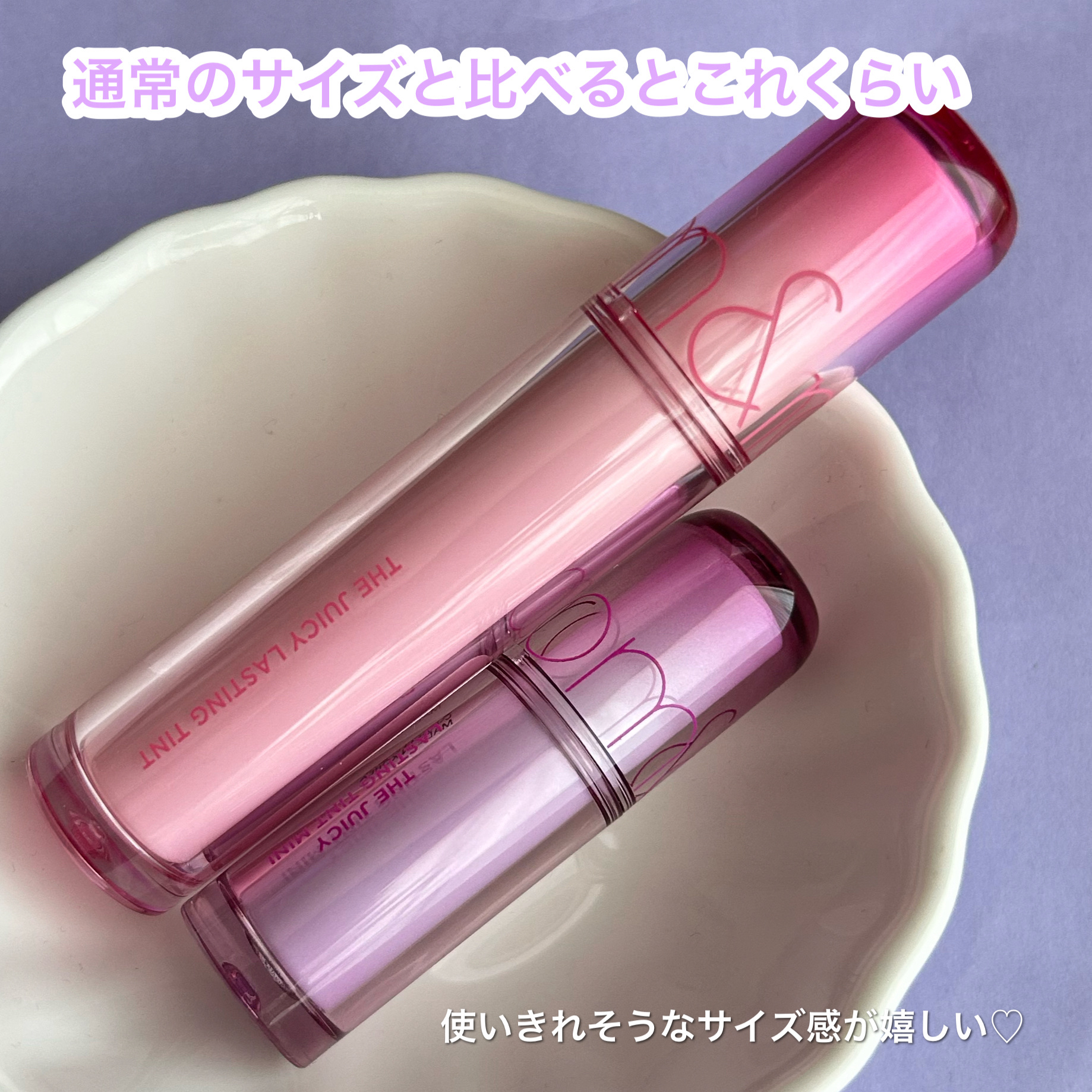 ロムアンドジューシーラスティングティントmini⟡.·11と12を買いました🎵💕💕11キャンベルグレープ優しいパープル!ちゃんとベース塗ってから塗ると白みパープルでかなり可愛い😭💯白みぴんくはあったけど🍇に🍼を足したようなパープルでこれは天才...