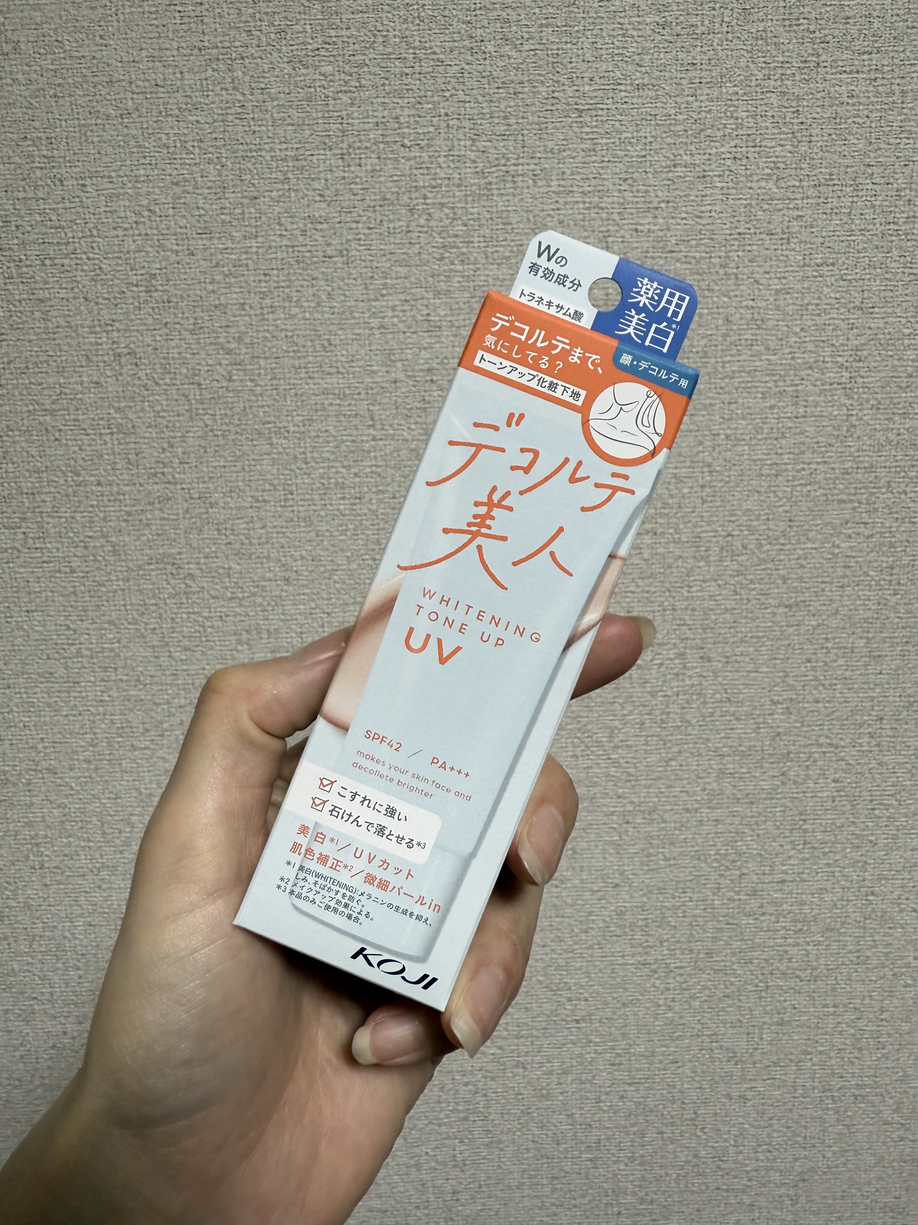 - 【医薬部外品】 デコルテまで気にしていますか? UVカットをしながら美白*1ケアができる、顔・デコルテ用の薬用美白*1トーンアップ*2乳液。 〇微細パール入りのほんのりピンク色 〇40g 〇SPF42/PA+++ 〇こすれに強い 〇石けんで落とせる 〇ノンケミカル処方 〇パッチテスト済み*3。 *1メラニンの生成を抑え、シミ・そばかすを防ぐ *2メイクアップ効果による *3すべての方に皮膚刺激が発生しないということではありません