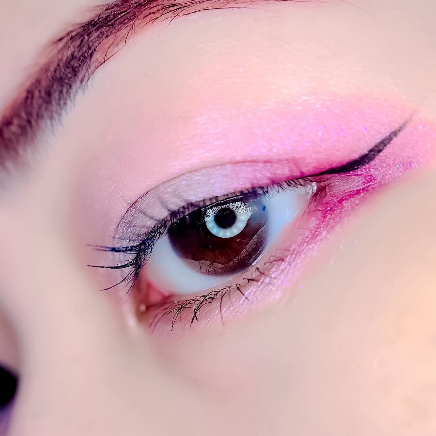 ピンクにグレージュも良いですね👌💗 今日は可愛らしい感じにしてみました💕 上下瞼黒目〜目頭側にラメを塗ってキラキラさせております🤩 目尻はマットのピンクを濃いめに重ねて💗 グレージュのアイライナーと相性◎
