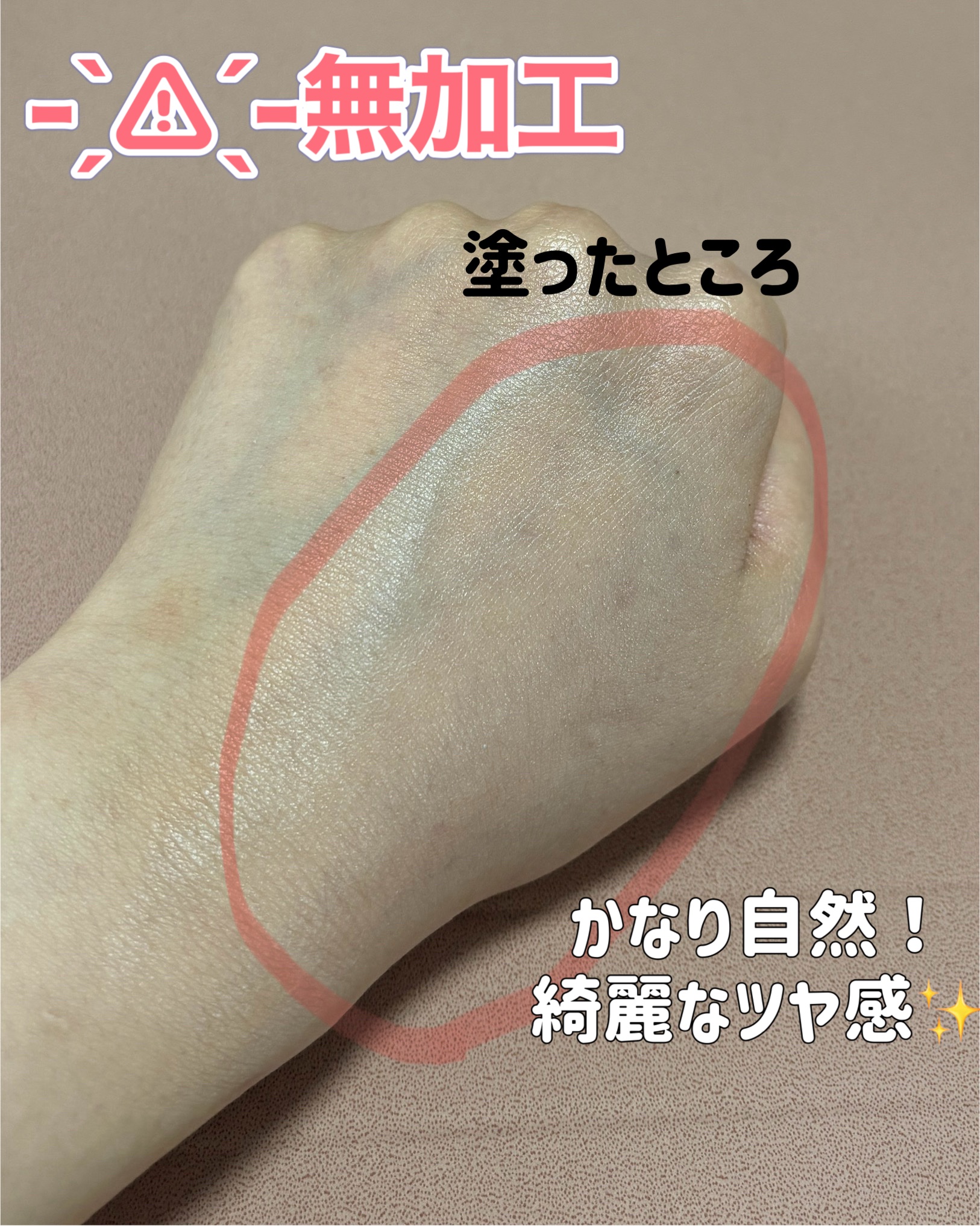 ピンクベースでみずみずしいテクスチャー🌱 しっかり伸びてくれるよ。 それとみて!!このツヤ感😳 カバー力はないけど、この上からファンデを使うとツヤ感とカバーカの両立ができるから、普段のメイクに追加するのおすすめっ❣️