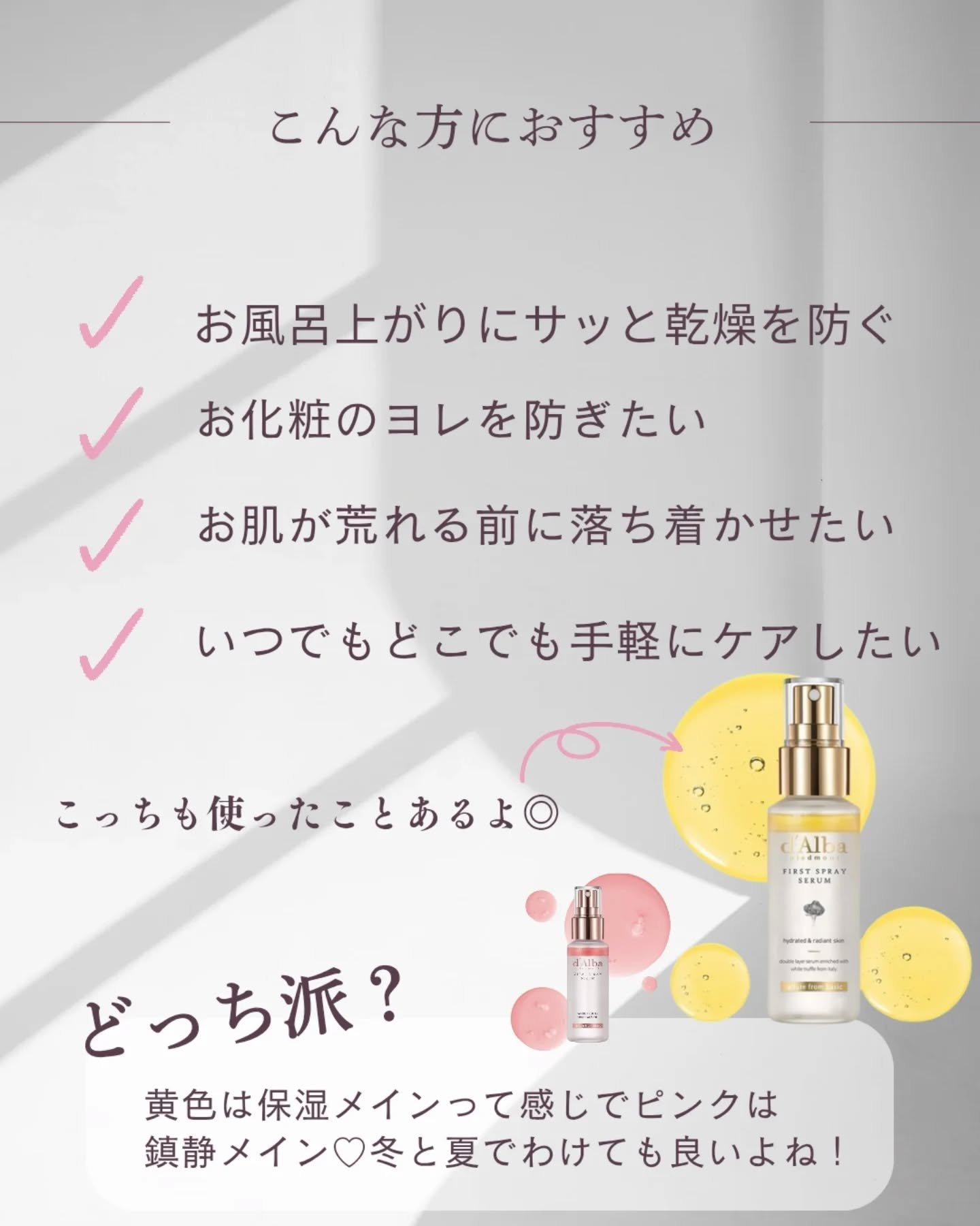 乾燥する機内でCAさんが愛用していたことから"CAミスト"としてバズったダルバのミストから待望のミニサイズが登場✍️ 粒子の細かいミストが肌にふわっと優しくついてくれて、瞬時にうる艶肌になれる💎 相変わらずいい。 シトラスアロマの香りも良すぎる🫶 毎日持ち歩いてなくなったら絶対リピしたい🙈