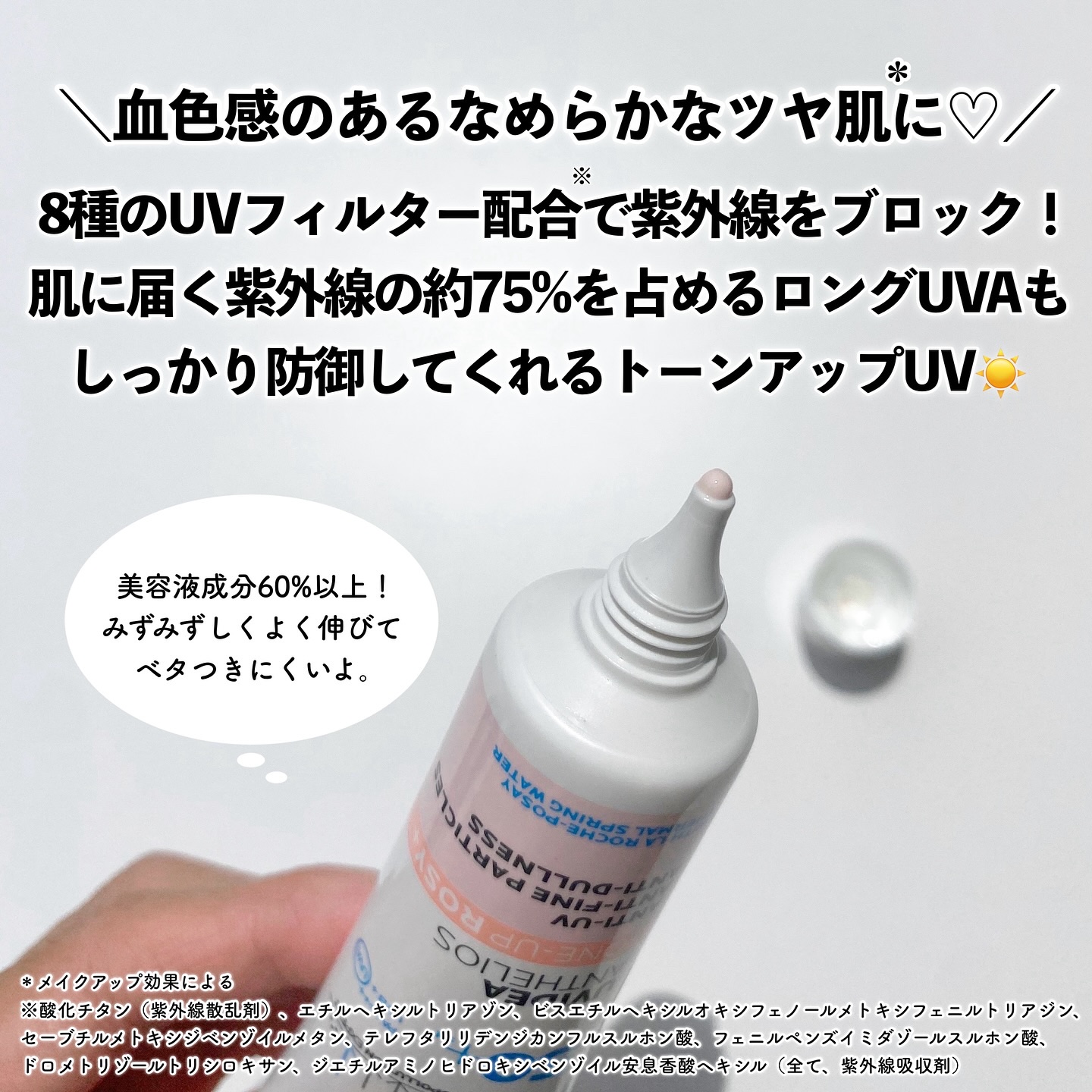 保湿力高めの下地が大好きなのでラロッシュポゼの下地はお気に入りでよく使います✨ かなりトーンアップします🤍自分は肌が黄ぐすみしやすいのでこれくらいトーンアップしてくれた方が時間がたった時にちょうどよくなります✨ 1番のお気に入りはローズです🌹肌から浮かない程よいトーンアップとほんのり血色感がよくなる所が大好きです🥰