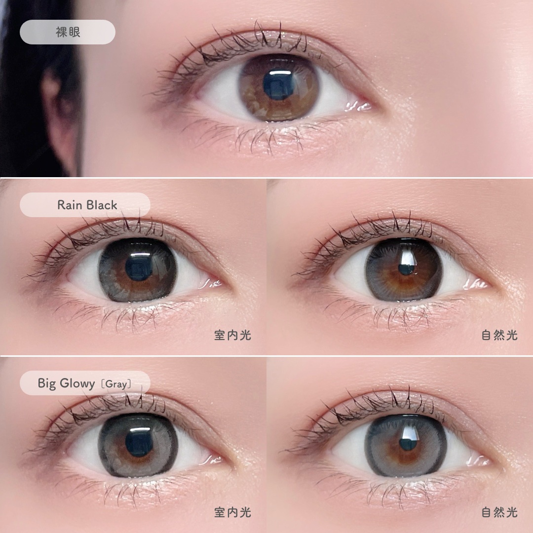 MOLAKのデザインが好きでお気に入り🫰 低含水レンズでドライアイのわたしには乾燥しづらく、1ヶ月使っても最後までほぼ乾く感じはないかな。 新しい方のブラウンバニーは太めフチでくりっとしたはっきりおめめに。 わたしは裸眼が明るめでぼやぁっとしてるので存在感を増してくれる! ドーリッシュグレーはダークグレー〜ライトグレーのグラデーションになっていてうるっとした感じに。 素の瞳が透けてるからそんなにグレー感が強くなく自然な感じが良かった。