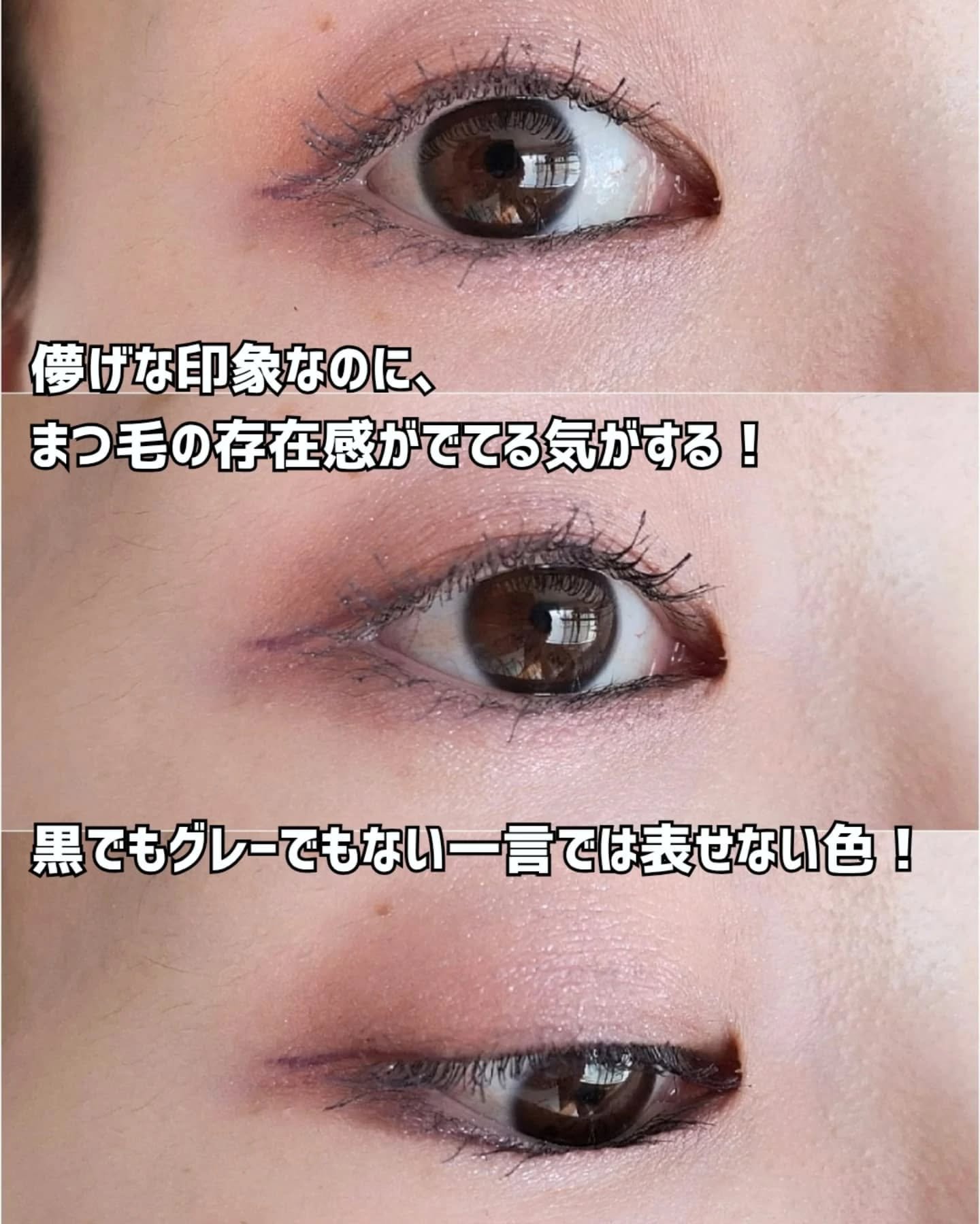 - <リッチブラック> 水添ポリイソブテン、トリメチルシロキシケイ酸、マイクロクリスタリンワックス、コメヌカロウ、ポリメチルシルセスキオキサン、パルミチン酸デキストリン、ナイロン-66、ポリエチレン、ジステアルジモニウムヘクトライト、加水分解シルク、アロエベラ葉エキス、ホホバ油、スクワラン、BG、(アクリレーツ/アクリル酸ステアリル/メタクリル酸ジメチコン)コポリマー、水、炭酸プロピレン、シリカ、フェノキシエタノール、酸化チタン、酸化鉄 <ブラウンブラック> 水添ポリイソブテン、トリメチルシロキシケイ酸、マイクロクリスタリンワックス、コメヌカロウ、ポリメチルシルセスキオキサン、パルミチン酸デキストリン、ナイロン-66、ポリエチレン、ジステアルジモニウムヘクトライト、加水分解シルク、アロエベラ葉エキス、ホホバ油、スクワラン、BG、(アクリレーツ/アクリル酸ステアリル/メタクリル酸ジメチコン)コポリマー、水、炭酸プロピレン、シリカ、フェノキシエタノール、酸化チタン、酸化鉄 <限定色 バイオレットブラック> 水添ポリイソブテン、トリメチルシロキシケイ酸、マイクロクリスタリンワックス、コメヌカロウ、ポリメチルシルセスキオキサン、パルミチン酸デキストリン、ナイロン-66、ポリエチレン、ジステアルジモニウムヘクトライト、加水分解シルク、アロエベラ葉エキス、ホホバ油、スクワラン、BG、(アクリレーツ/アクリル酸ステアリル/メタクリル酸ジメチコン)コポリマー、水、炭酸プロピレン、シリカ、フェノキシエタノール、酸化チタン、酸化鉄