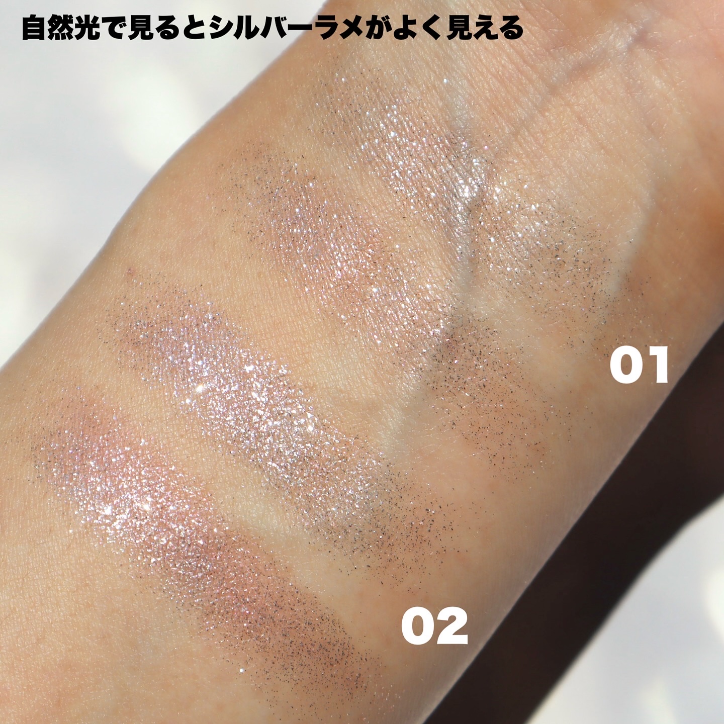 - ※03は2025年11月下旬よりロフト・プラザで先行発売。2026年3月下旬発売予定で2026年4月以降定番導入予定となります。 自分の気持ちを上げる♪ キャンメイク史上最もキラキラ!?ご褒美級ラメシャドウ✨ 高輝度、高密着! ラメ好きさんには是非使ってほしい✨ まるで発光しているかのように輝く大粒ラメアイシャドウです。 他のアイシャドウの上から重ねても濁らない 透明度の高いラメで、美しい輝きが楽しめます。 まるでラメの膜が張るようにぴたっと密着! ラメ飛びしにくく、キレイな仕上がりが長時間続きます。 【同系色の2色入り】 左:カラーレスメイクや、淡いアイシャドウに合わせやすいラメ 右:ほんのりベースカラーが発色する、華やかなカラーラメ