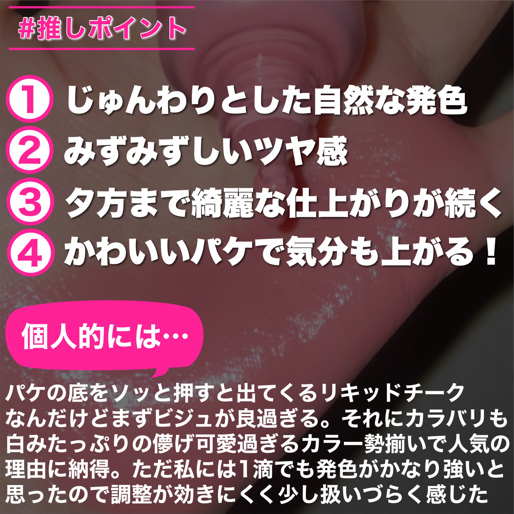 | リキッドチークランキング第1位 | 水彩みたいにじゅわっと発色するうるうる血色チークが可愛すぎる🩰 | 詳細を見る | ||