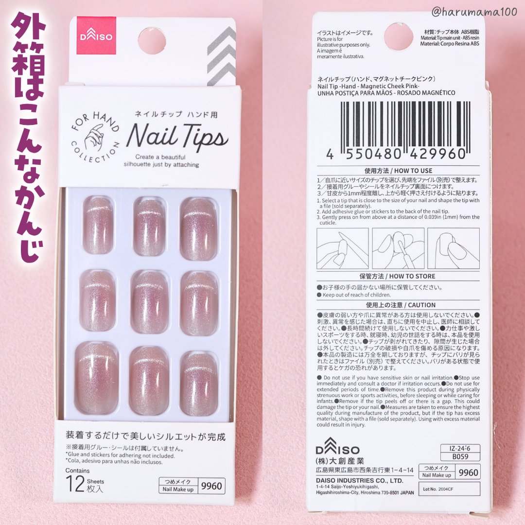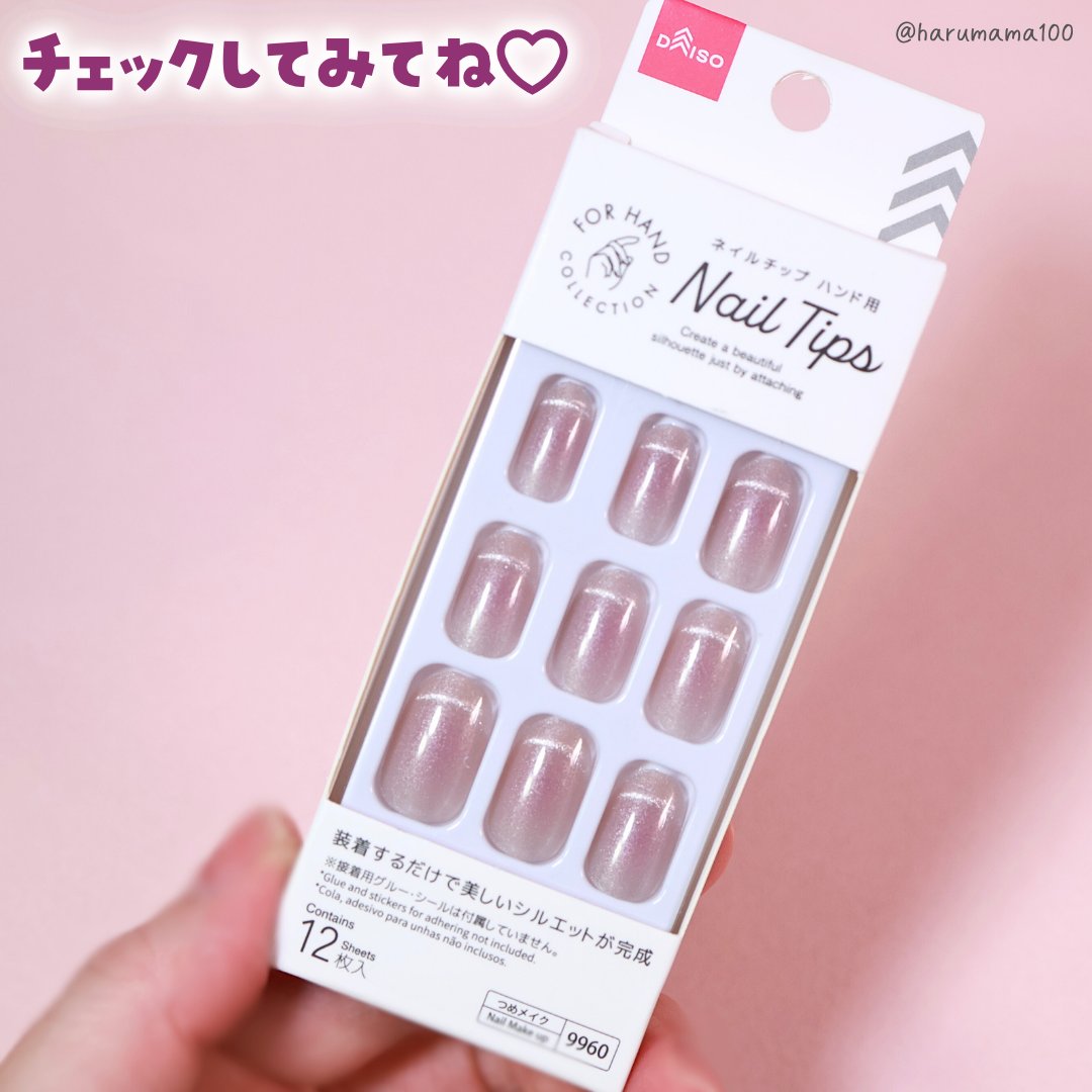 ダイソーのネイルチップ進化しすぎ。DAISOネイルチップレビューDAISOのネイルチップを4種類買ってみました!まずはマグネットチークピンク。こちらはかなり透け感があるので自爪短い方は若干透けるかもですがチーク感と先に光の集まったマグネットデ...