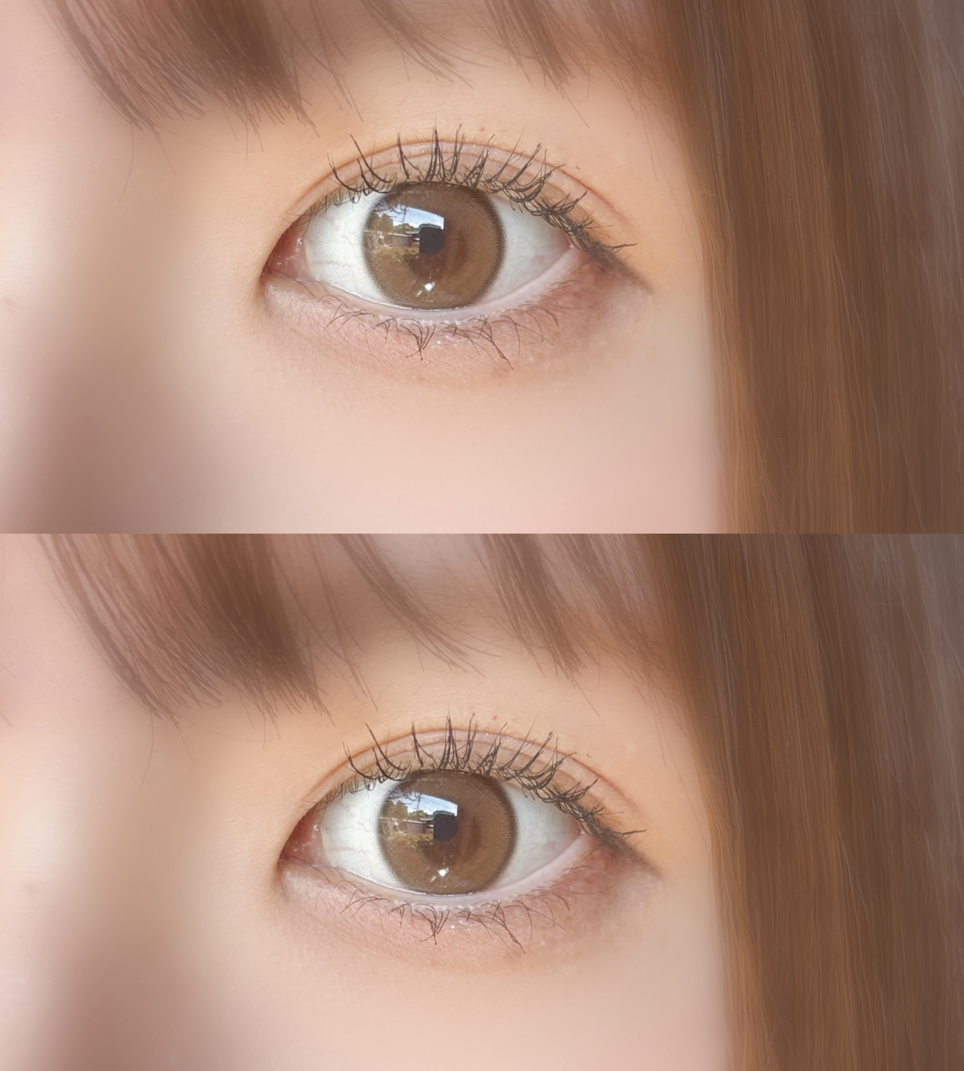 色素薄めなベージュカラーに細フチがあって可愛い! 室内だと少し暗めですが光に当たると明るくベージュが発色してくれます🥺 サイズは小さめだけど細フチがあるので大きすぎずナチュラルに盛れます! ずっとリピしていたいカラコン🦋 色素薄い系で橋本環奈ちゃんのような瞳になれるカラコンです🤍