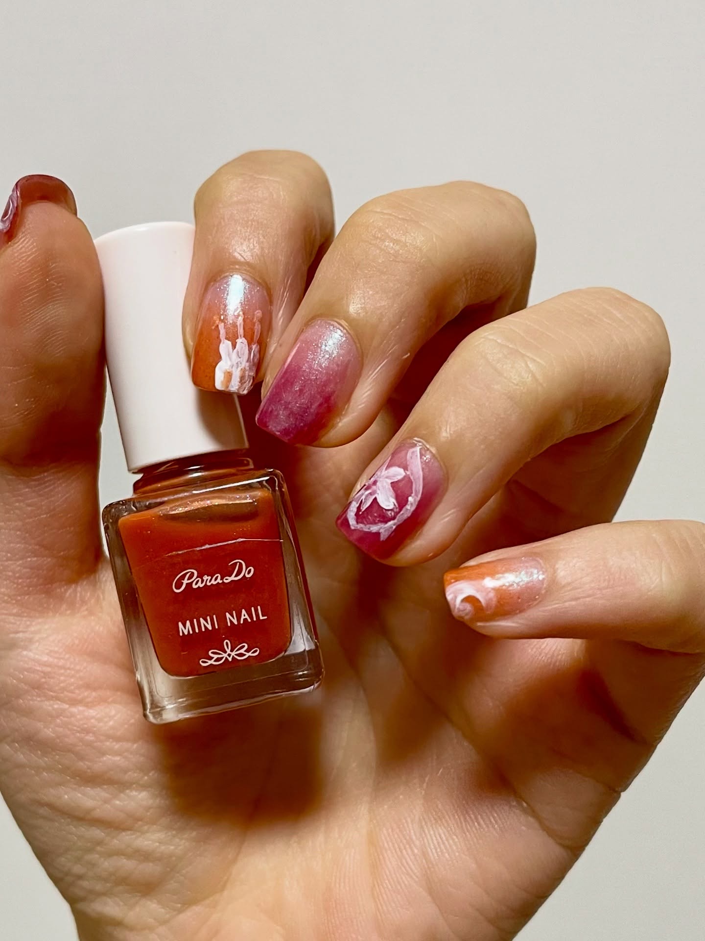 グラデネイル@nailholic_koseのRD039Fでグラデーションネイル💅ひまわりの中心に使ったカラーカラー名的には赤なんだけど、爪に塗ると赤みがかった茶色に発色夕日にも紅茶にも、秋先取りネイルにも見える絶妙な色味🌇☕️🍂中指と薬指は、...