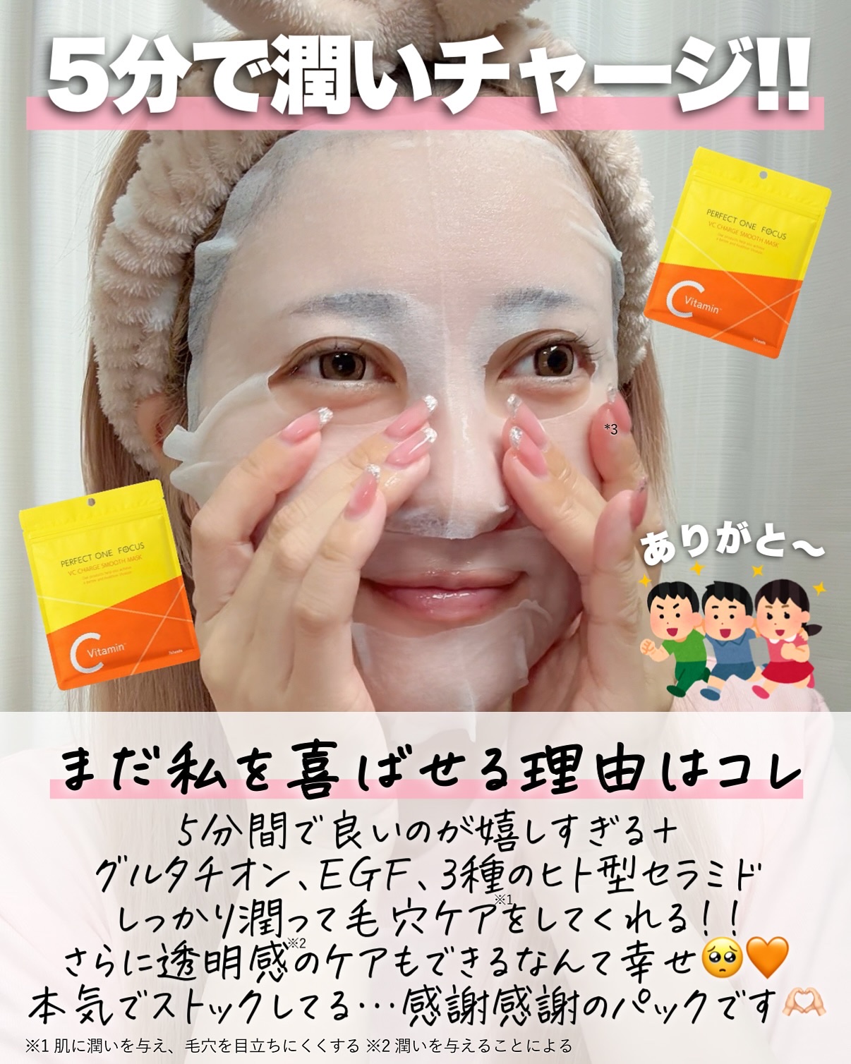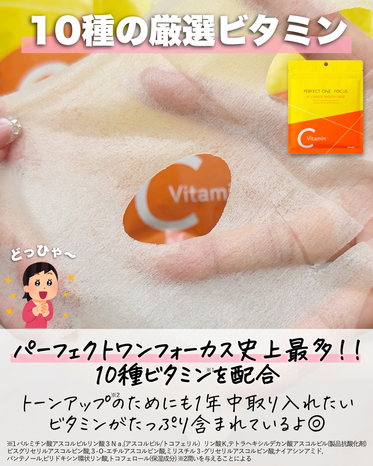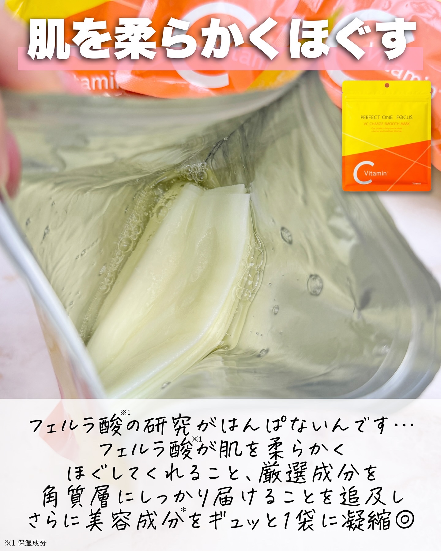 @perfectone_focusパーフェクトワンフォーカス「VCチャージスムースマスク」¥880クレンジングバームが有名なパーフェクトワンフォーカスから新発売となったこちらのシートマスク✨️「パーフェクトワンフォーカス」史上最多の10種類の...