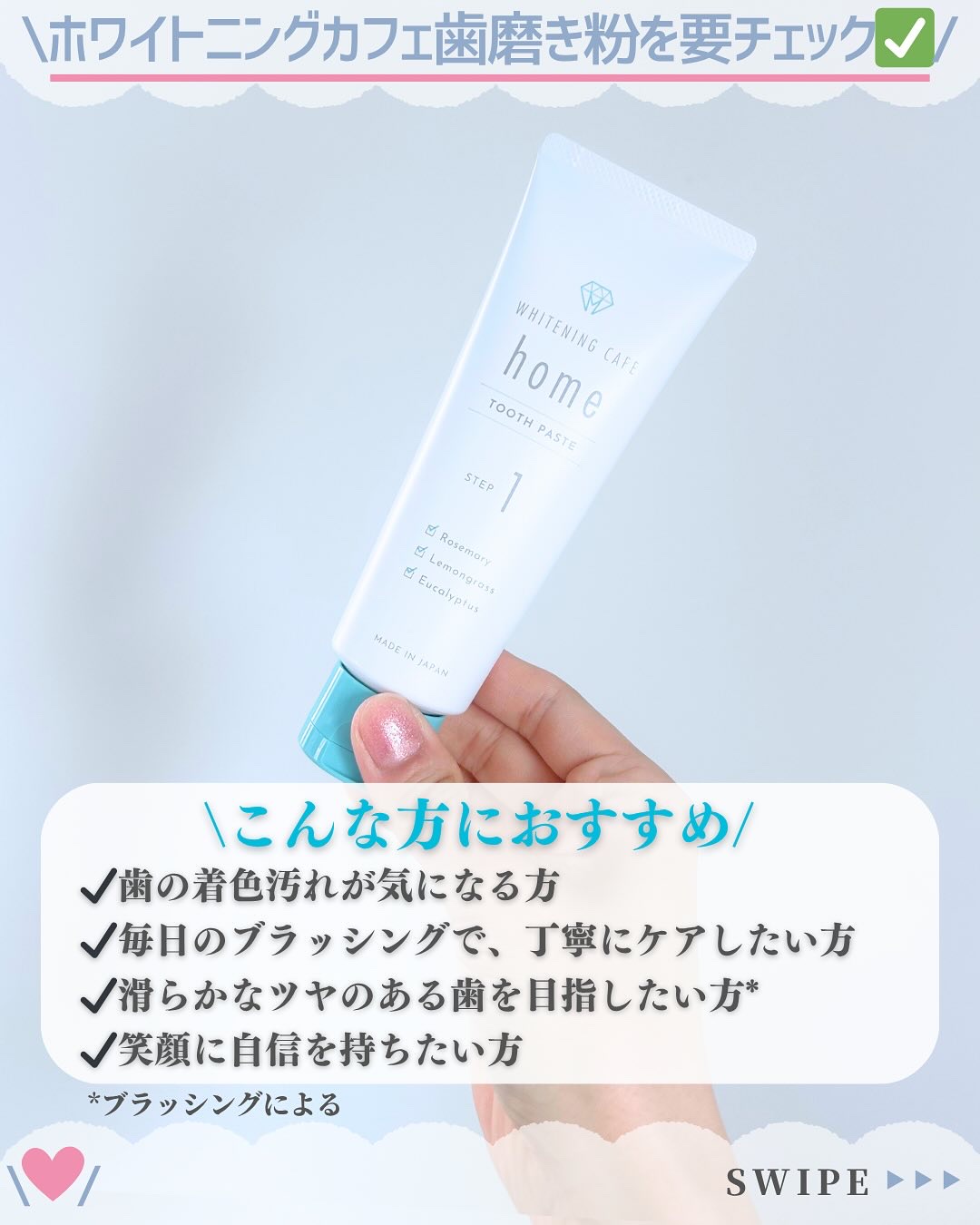 ■専門店が作ったホワイトニング歯磨き!■ホワイトニングカフェホームトゥースペーストホワイトニングカフェさんより歯磨き粉をご提供いただきました!ホワイトニングカフェは歯のブライトニングケアをしたい方向け「セルフホワイトニング専門店」。お店で歯磨...
