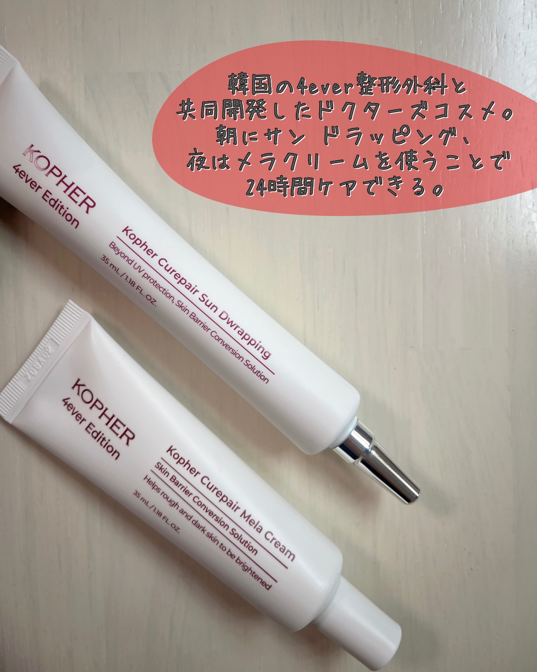 ✴︎KOPHER@kopher_jpCUREPAIRMELACREAMCUREPAIRSUNDWRAPPING韓国のドクターズコスメ、コフェル。大人気アイテムであるキュリペアメラクリームと、キュリペアサンドラッピングを使用しました!☑︎CUR...