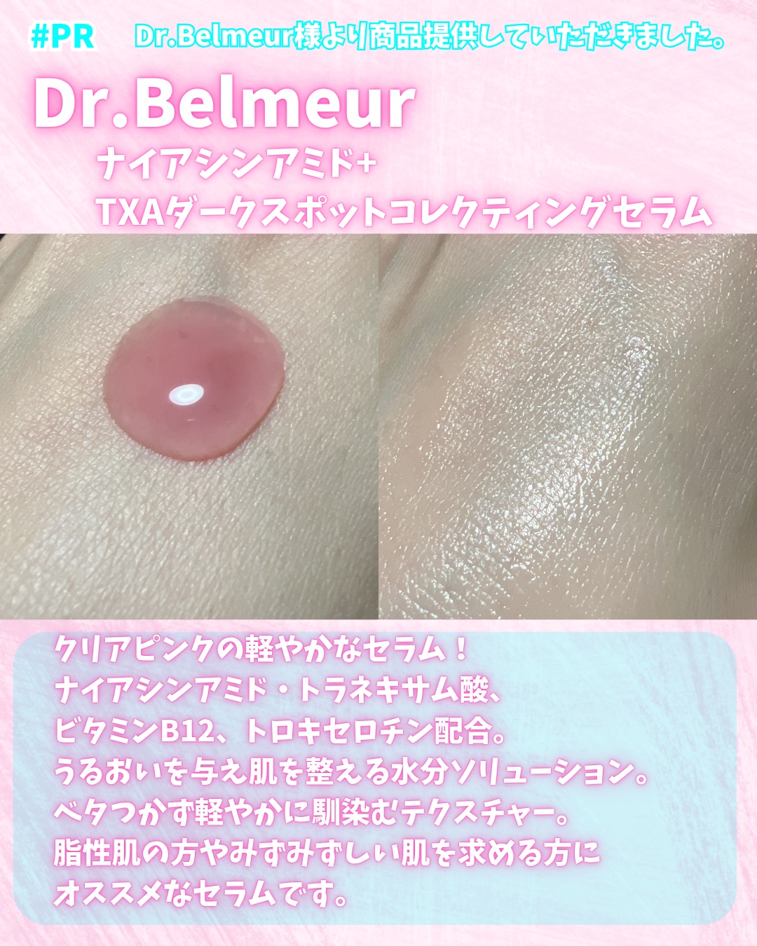 🧸▶︎▶︎▶︎Dr.Belmeurナイアシンアミド・TXAダークスポットコレクティングセラム♡...................♡油分、皮脂、角質などの肌悩みをケアしたいときに💓ピンクビタミンB12、トロキセロチン成分が入っていて、ピンク...