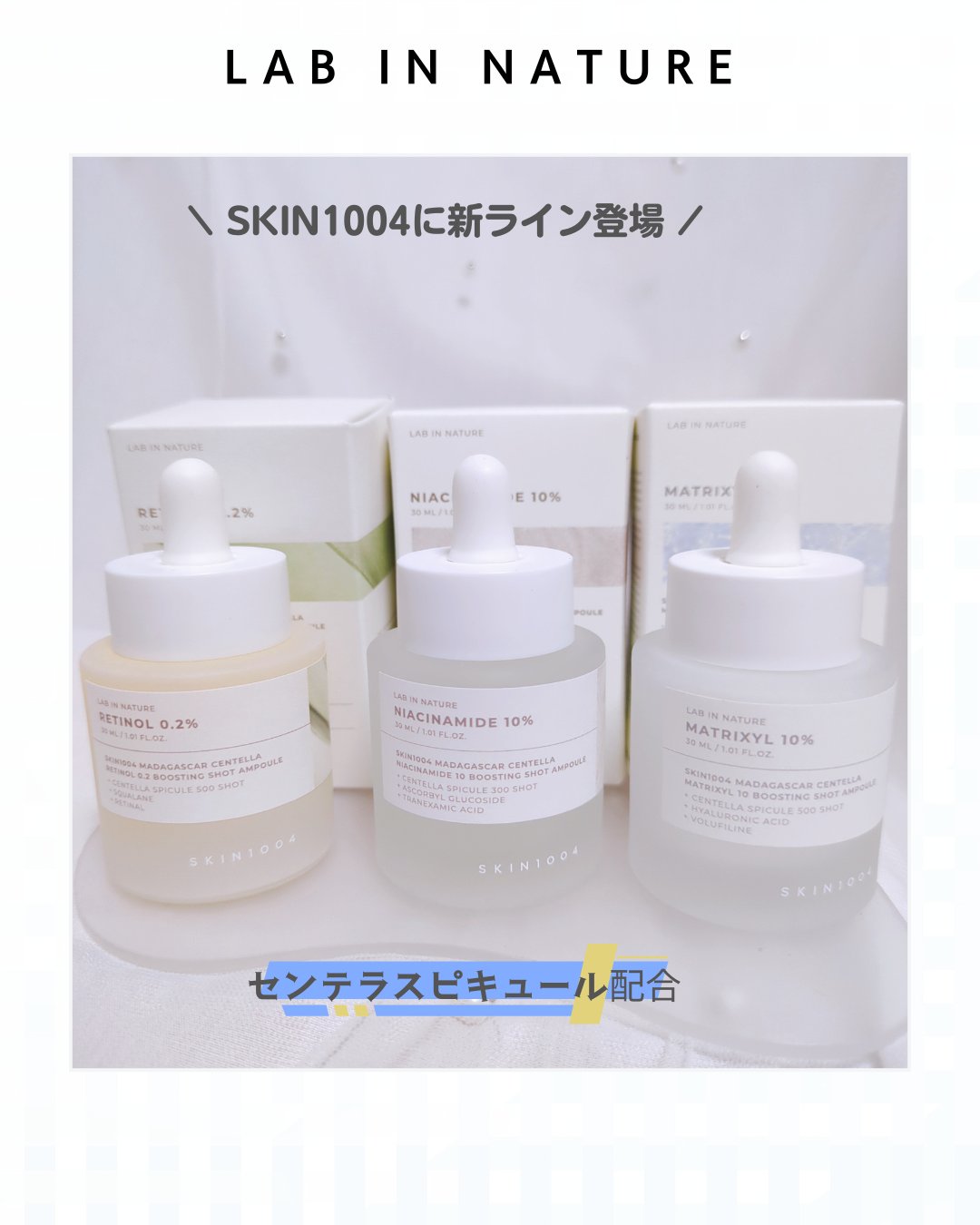 SKIN1004💛レチノール0.2ブースティングショットアンプル🤍ナイアシンアミド10ブースティングショットアンプル🩵マトリキシル10ブースティングショットアンプルSKIN1004から新ライン【LABINNATURE】が登場ˎˊ˗皮膚科学の観...