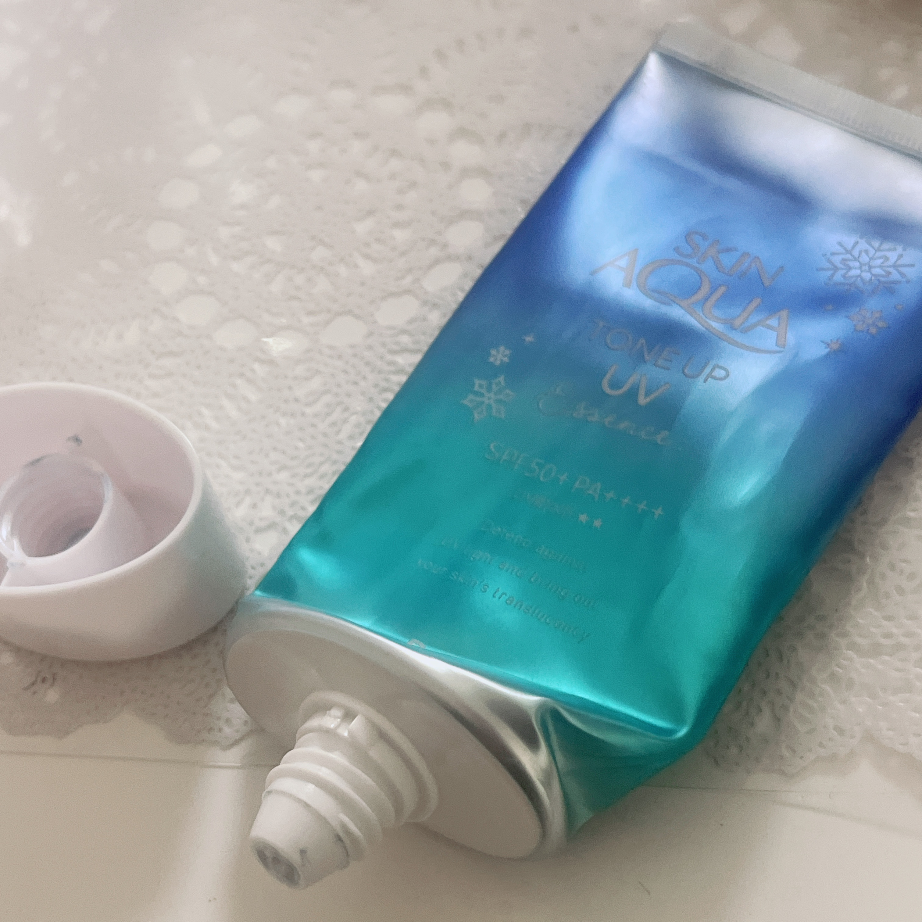 スキンアクア トーンアップUVエッセンスはかなげブルー 人気のトーンアップUVエッセンスからはかなげブルーが登場! かなり肌の赤みやくすみをとばして透明感が出るものの結構自然なトーンアップなのですごく使いやすい♡ スキンアクアのトーンアップUVは全色使ったことありますが体用として使うなら今までのカラーシリーズで一番好きかも!