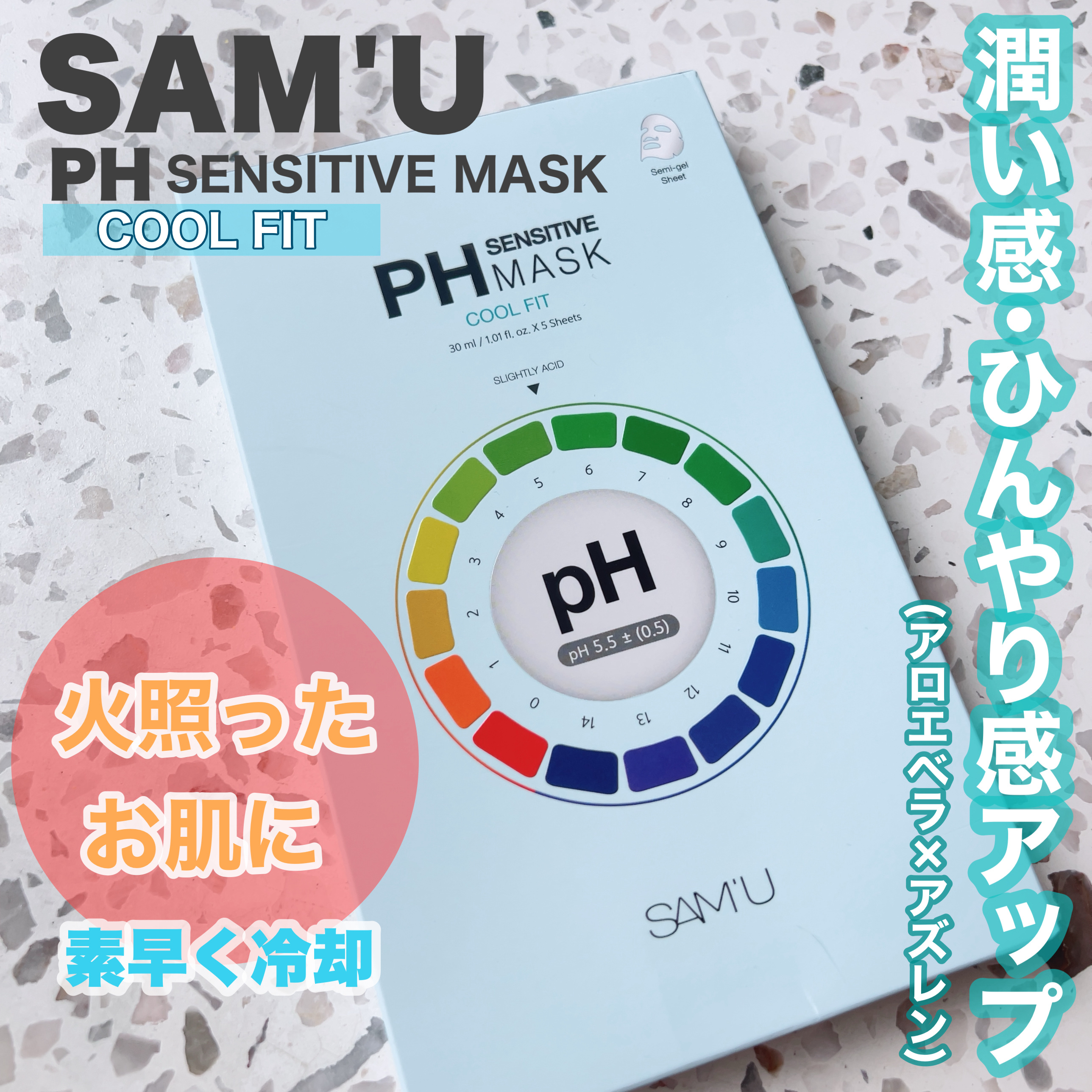 .💠💠💠💠💠💠💠SAM’UサミュPHセンシティブマスククールフィット💠💠💠💠💠💠💠火照った肌の温度を素早く冷却🧊ぷるんとしたジェルシートが暑さや乾燥による肌のコンディションを心地よく整えるクーリングマスク。アロエベラ葉エキスやアズレンなどの整...
