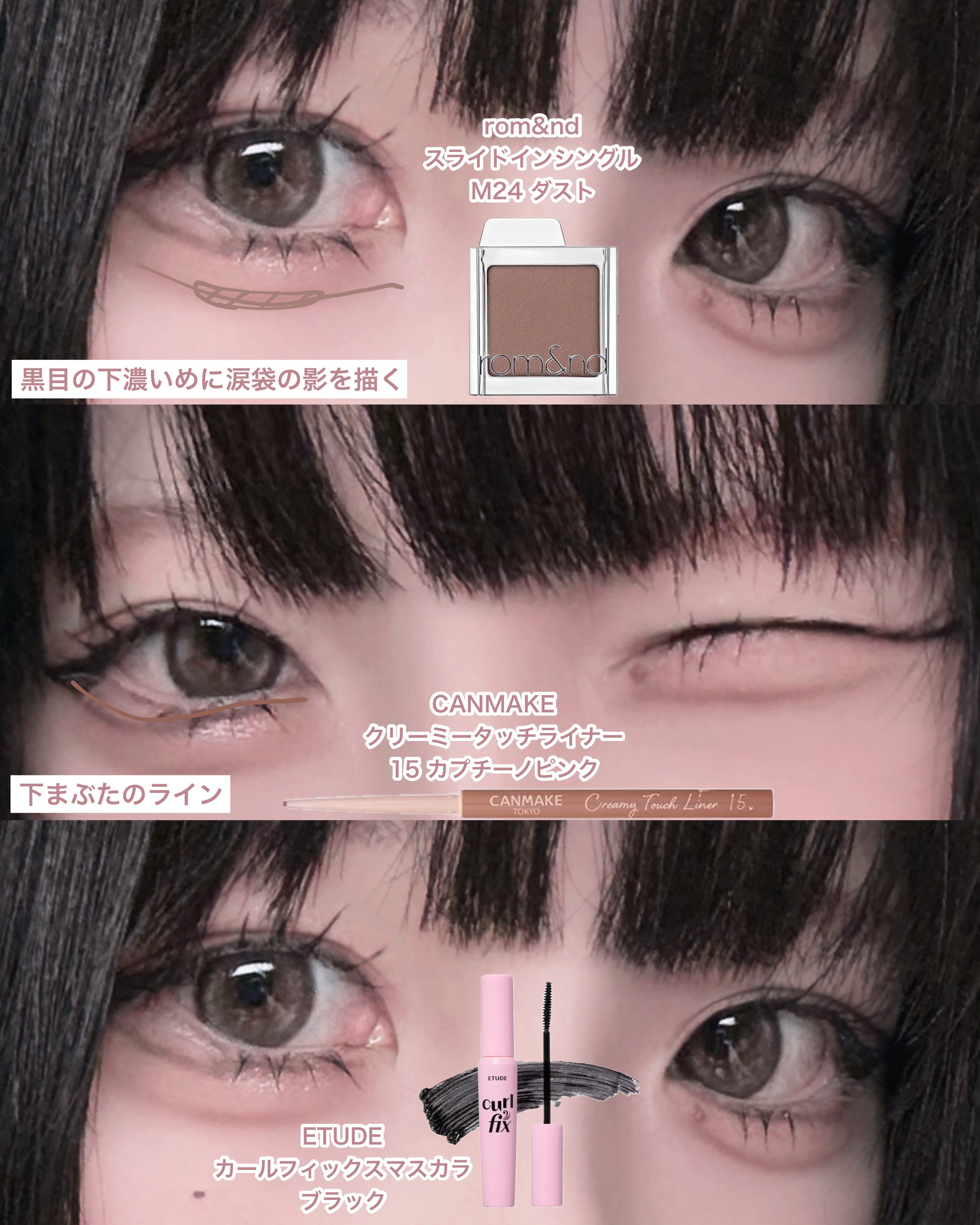 まつ毛の束感の作り方⤵︎⤵︎⤵︎ クマの隠し方と眉毛については後日詳しく紹介します.ᐟ .ᐟ 特にクマの隠し方はめちゃめちゃおすすめの方法なのでビフォーアフターで紹介します!