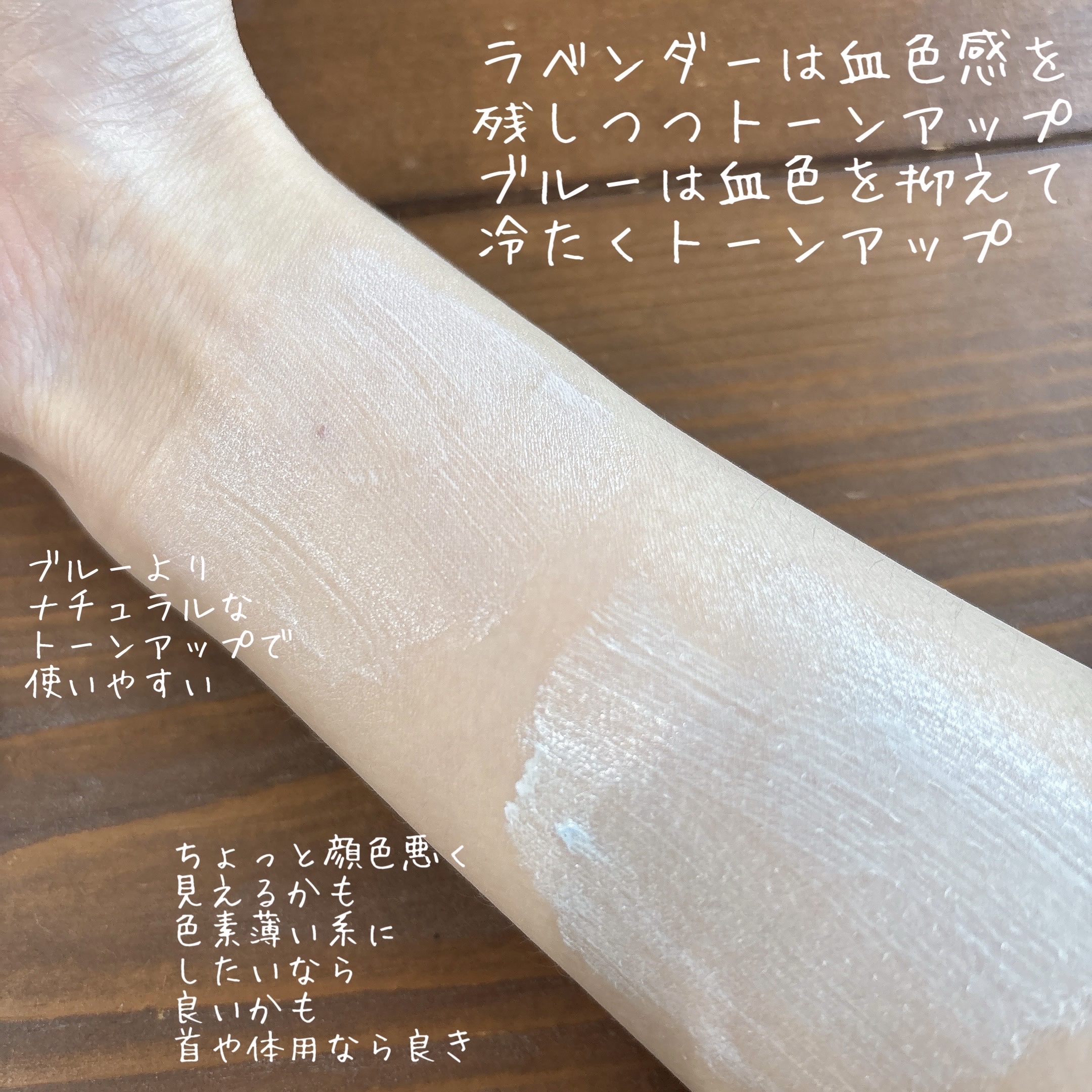 - <ミントグリーン> 水、エタノール、メトキシケイヒ酸エチルヘキシル、BG、トリエチルヘキサノイン、酸化チタン、ジエチルアミノヒドロキシベンゾイル安息香酸ヘキシル、ヒアルロン酸Na、クダモノトケイソウ果実エキス、イザヨイバラエキス、リン酸アスコルビルMg、プルーン分解物、ビスPEG-18メチルエーテルジメチルシラン、メチレンビスベンゾトリアゾリルテトラメチルブチルフェノール、ジメタクリル酸グリコールクロスポリマー、ビスエチルヘキシルオキシフェノールメトキシフェニルトリアジン、ステアリン酸PEG-40、(アクリレーツ/アクリル酸アルキル(C10-30))クロスポリマー、TEA、(アクリロイルジメチルタウリンアンモニウム/VP)コポリマー、シリカ、ポリスチレン、ポリビニルアルコール、ポリシリコーン-13、EDTA-2Na、デシルグルコシド、キサンタンガム、アルミナ、PG、合成フルオロフロゴパイト、酸化スズ、黄4、青1、香料 <ブルー> 水、エタノール、メトキシ ケイヒ酸エチルヘキシル、BG、酸化チタン、トリエチルヘキサ ノイン、ジエチルアミノヒドロ キシベンゾイル安息香酸ヘキシ ル、ビスエチルヘキシルオキシ フェノールメトキシフェニルト リアジン、ヒアルロン酸Na、ツ ボクサ葉エキス(CICAエキス)、イザヨイバラエキス、リン酸ア スコルビルMg(ビタミンC誘導 体)、プルーン分解物、メチレン ビスベンゾトリアゾリルテトラ メチルブチルフェノール、ステ アリン酸PEG-40、(アクリレー ツ/アクリル酸アルキル(C10-30)) クロスポリマー、TEA、(アクリ ロイルジメチルタウリンアンモ ニウム/VP)コポリマー、シリ カ、ポリシリコーン-13、EDTA-2Na、デシルグルコシ ド、キサンタンガム、アルミ ナ、PG、合成フルオロフロゴパ イト、酸化スズ、赤227、青1、香料 <ラベンダー> 水、エタノール、メトキシケイヒ酸エチルヘキシル、BG、トリエチルヘキサノイン、酸化チタン、ジエチルアミノヒドロキシベンゾイル安息香酸ヘキシル、ヒアルロン酸Na、クダモノトケイソウ果実エキス、イザヨイバラエキス、リン酸アスコルビルMg、プルーン分解物、ビスPEG-18メチルエーテルジメチルシラン、メチレンビスベンゾトリアゾリルテトラメチルブチルフェノール、ジメタクリル酸グリコールクロスポリマー、ビスエチルヘキシルオキシフェノールメトキシフェニルトリアジン、ステアリン酸PEG-40、(アクリレーツ/アクリル酸アルキル(C10-30))クロスポリマー、TEA、(アクリロイルジメチルタウリンアンモニウム/VP)コポリマー、シリカ、ポリスチレン、ポリビニルアルコール、ポリシリコーン-13、EDTA-2Na、デシルグルコシド、キサンタンガム、アルミナ、PG、合成フルオロフロゴバイト、酸化スズ、赤227、青1、香料 <ローズ> 水、エタノール、メトキシケイヒ酸エチルヘキシル、BG、トリエチルヘキサノイン、酸化チタン、ジエチルアミノヒドロキシベンゾイル安息香酸ヘキシル、ヒアルロン酸Na、クダモノトケイソウ果実エキス、イザヨイバラエキス、リン酸アスコルビルMg、プルーン分解物、ビスPEG-18メチルエ-テルジメチルシラン、メチレンビスベンゾトリアゾリルテトラメチルブチルフェノール、ジメタクリル酸グリコールクロスポリマー、ビスエチルヘキシルオキシフェノールメトキシフェニルトリアジン、ステアリン酸PEG-40、(アクリレーツ/アクリル酸アルキル (C10-30))クロスポリマー、TEA、(アクリロイルジメチルタ ウリンアンモニウム/VP)コポリマー、シリカ、ポリスチレン、ポリビニルアルコール、ポリシリコーン-13、EDTA-2Na、デシルグルコシド、キサンタンガム、アルミナ、PG、合成フルオロフロゴパイト、酸化鉄、酸化スズ、香料