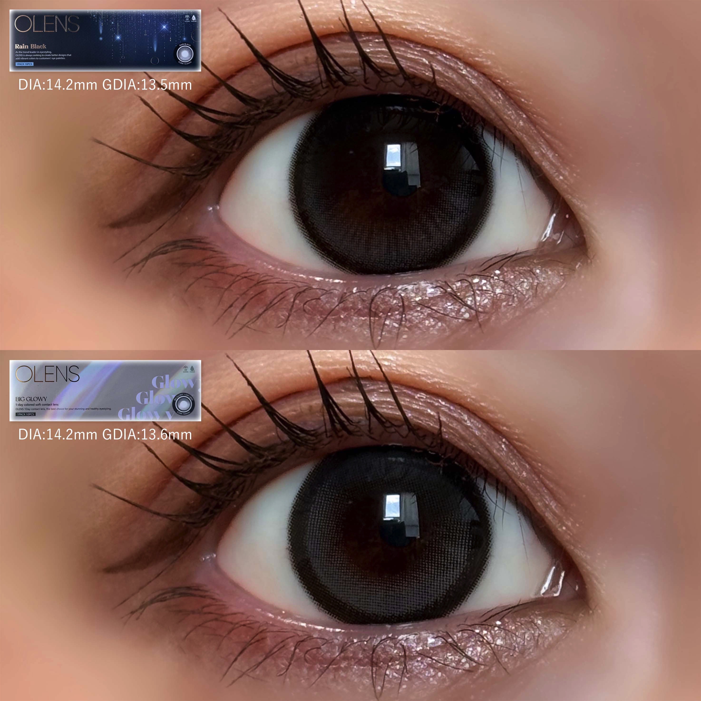 𐙚OLENS⸜new⸝RainBlack@olens︎_jp⚪︎1Day(一箱10枚入り)⚪︎DIA14.2mm着色直径13.5mm⚪︎含水率48%.˚⊹⁺‧‧⁺⊹˚.透け感を加えて雨夜のようなハイライターパターンでつやつやと輝く目元を演...