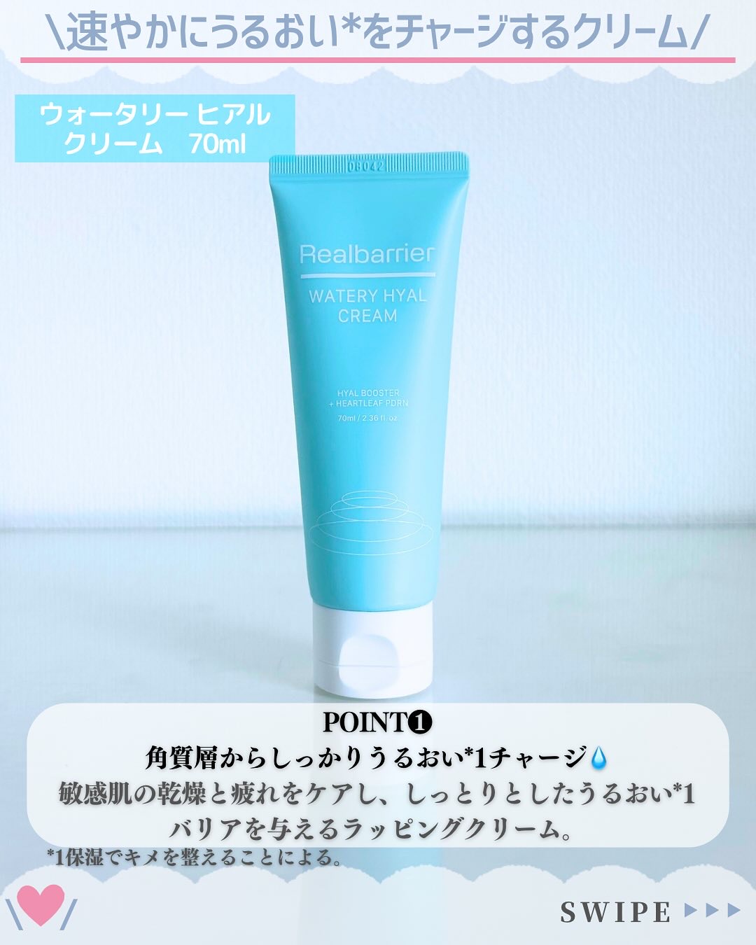 みずみずしくうるおい補給!▫️Realbarrier・ウォータリーヒアルセラム・ウォータリーヒアルクリーム2025年5月に発売された「ウォータリーヒアルライン」のアイテム。デリケートで乾燥しがちな肌のことを考えて作られたシリーズ✨セラミド、ヒ...