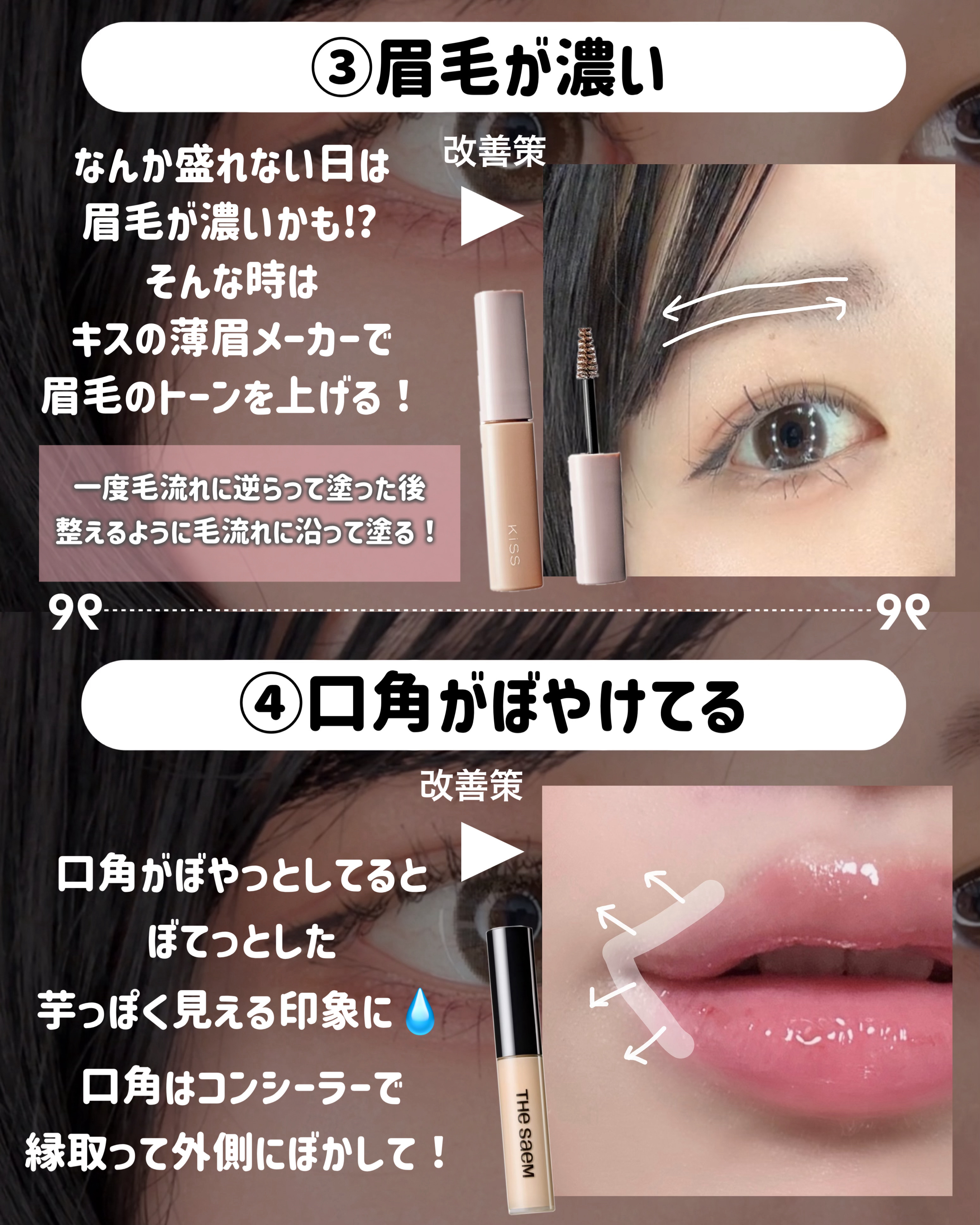 いつものメイクにちょっとプラスするだけで 顔の印象が垢抜けるメイクテク6選です🙌🏻 #KATE ダブルラインエキスパート(血色陰影カラー) PK-1極薄ピンク ¥935 #Kiss メロウシャドウ 52ソメイピンク ¥1,320
