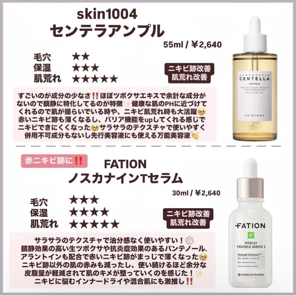 【使った商品】▶️FATIONノスカナイントラブルセラム ¥2,640▶️ノスカナイントラブルトーニングアンプル✂もう何本リピしてるか分からないくらい使ってるFATION‼️🇰🇷のYouTuberさんを結構見て参考にすることが多いんだけど、肌...