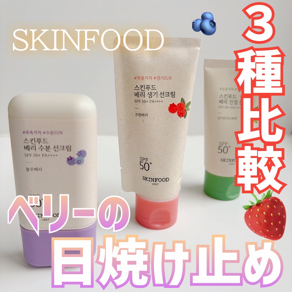 SKINFOOD▶︎BerryMoisturizingSunCream🫐▶︎BerrySoothingSunCream🌿▶︎BerryGlowingSunCream🍓話題のベリー日焼け止め比較してみたよ◎どれも良過ぎて迷っちゃう🔥有機、無機、...