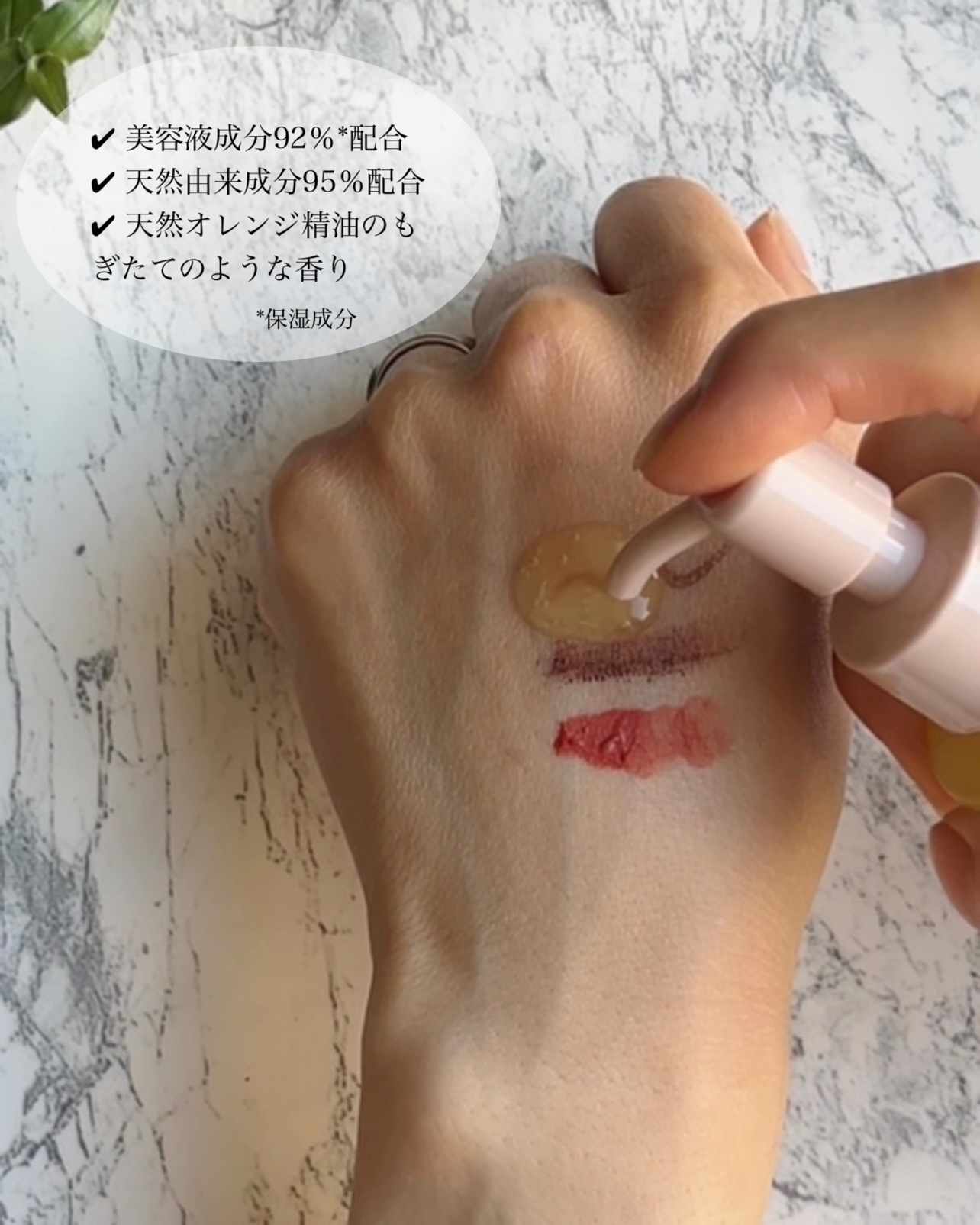 タオルドライ後、500円玉大を髪の根本から毛先へ、ミディアムなので2回(500円玉2個分)なじませています サラサラの水のようなテクスチャーで、濡れた髪にもスーッとなじむので使いやすい オイルのようにベタついたり、ヌルヌルしたりしないので、根本からかきあげながら指を通して毛先にもみこむように使っても全然イヤじゃない オイルなどだと基本毛先から中間までしかなじませられないけれど、これは根本からつけられて、地肌もべたつくこともないから使いやすい 乾かしたあとの髪はサラサラ 乾くまでの時間も少し早いのかもしれない ただ初めて使ったときは香りの強さにビックリしました 私の場合1回目では良さがわからず、使い続けていくうちに髪がサラサラ+ストンとまとまって、良さを実感する事ができました 今ではドライヤーで乾かしたあとの仕上がり、髪がベタつかない使用感などが気に入り、アウトバストリートメントのスタメン入りとなりました