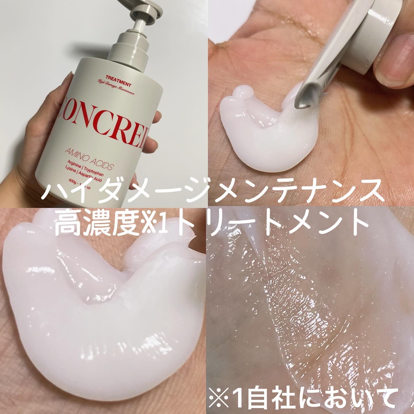 - <シャンプー 本体> 水、オレフィン(C14-16)スルホン酸Na、コカミドプロピルベタイン、ラウロイルメチルアラニンNa、ココイルメチルタウリンNa、コカミドDEA、アルギニン、トリプトファン、リシンHCl、アスパラギン酸、セラミドNP、セラミドNG、セラミドAP、コレステロール(羊毛)、フィトスフィンゴシン、ポリクオタニウム-10、ココイルグルタミン酸TEA、グリコシルトレハロース、デシルグルコシド、加水分解水添デンプン、ペンタステアリン酸ポリグリセリル-10、クエン酸、EDTA-2Na、クエン酸Na、フェノキシエタノール、安息香酸Na、塩化Na、ベヘニルアルコール、ステアロイルラクチレートNa、香料 <トリートメント 本体> 水、ソルビトール、プロパンジオール、ジメチコン、セテアリルアルコール、グリセリン、アモジメチコン、ステアロキシプロピルトリモニウムクロリド、エチルヘキサン酸セチル、セタノール、ステアリルアルコール、アルギニン、トリプトファン、リシンHCl、アスパラギン酸、セラミドNP、セラミドNG、セラミドAP、コレステロール(羊毛)、フィトスフィンゴシン、カエサルピニアスピノサヒドロキシプロピルトリモニウムクロリド、パルミチン酸デキストリン、スクワラン、ツバキ種子油、マカデミア種子油、ヒマワリ種子油、ジメチコノール、ベヘントリモニウムクロリド、ペンタステアリン酸ポリグリセリル-10、EDTA-2Na、ヒドロキシエチルセルロース、イソプロパノール、クエン酸、フェノキシエタノール、クエン酸Na、ベヘニルアルコール、ステアロイルラクチレートNa、香料 <シャンプー詰替> 水、オレフィン(C14-16)スルホン酸Na、コカミドプロピルベタイン、ラウロイルメチルアラニンNa、ココイルメチルタウリンNa、コカミドDEA、アルギニン、トリプトファン、リシンHCl、アスパラギン酸、セラミドNP、セラミドNG、セラミドAP、コレステロール(羊毛)、フィトスフィンゴシン、ポリクオタニウム-10、ココイルグルタミン酸TEA、グリコシルトレハロース、デシルグルコシド、加水分解水添デンプン、ペンタステアリン酸ポリグリセリル-10、クエン酸、EDTA-2Na、クエン酸Na、フェノキシエタノール、安息香酸Na、塩化Na、ベヘニルアルコール、ステアロイルラクチレートNa、香料 <トリートメント 詰替> 水、ソルビトール、プロパンジオール、ジメチコン、セテアリルアルコール、グリセリン、アモジメチコン、ステアロキシプロピルトリモニウムクロリド、エチルヘキサン酸セチル、セタノール、ステアリルアルコール、アルギニン、トリプトファン、リシンHCl、アスパラギン酸、セラミドNP、セラミドNG、セラミドAP、コレステロール(羊毛)、フィトスフィンゴシン、カエサルピニアスピノサヒドロキシプロピルトリモニウムクロリド、パルミチン酸デキストリン、スクワラン、ツバキ種子油、マカデミア種子油、ヒマワリ種子油、ジメチコノール、ベヘントリモニウムクロリド、ペンタステアリン酸ポリグリセリル-10、EDTA-2Na、ヒドロキシエチルセルロース、イソプロパノール、クエン酸、フェノキシエタノール、クエン酸Na、ベヘニルアルコール、ステアロイルラクチレートNa、香料